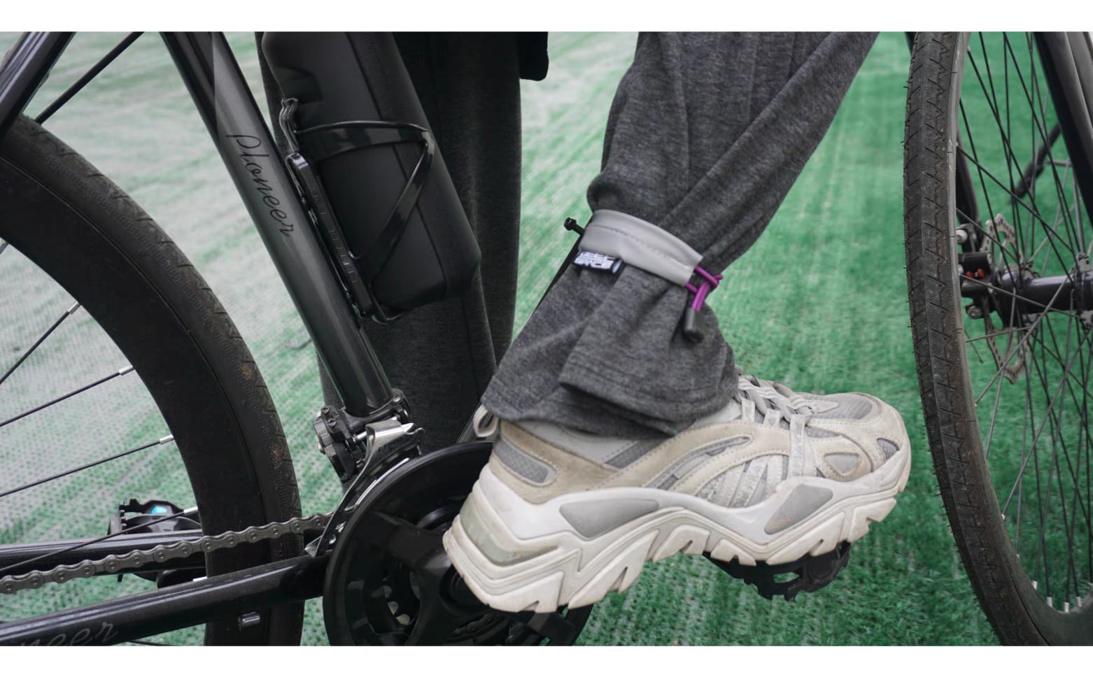 自転車等のライディング時にパンツの裾を留め、チェーンなどの汚れや破れからパンツを保護します