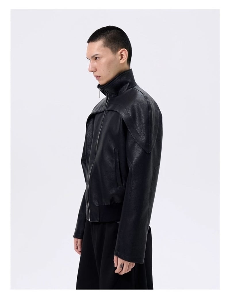 FRKM SCD 25AW ひび割れレザー スプリットショートスタンドカラージャケット