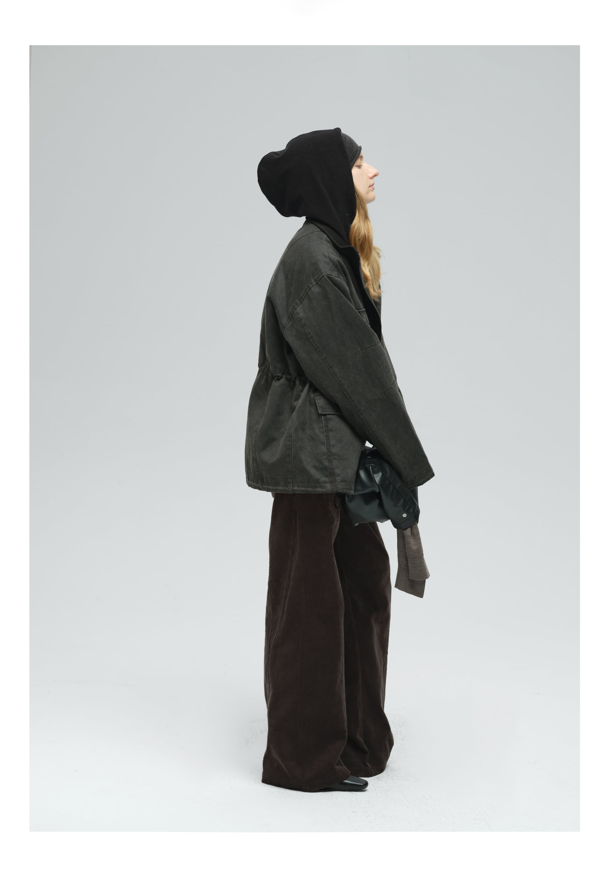 丁寧な発酵洗い加工によって、自然なヴィンテージ風のテクスチャーと深みのある表情を実現しています。