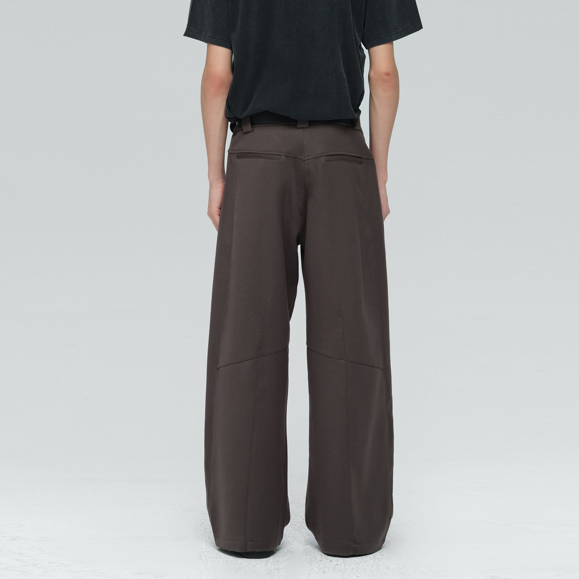 前面のダブルプリーツと背面のダーツ加工が立体的なフォルムを生み出し、細部まで丁寧に仕立てられています。