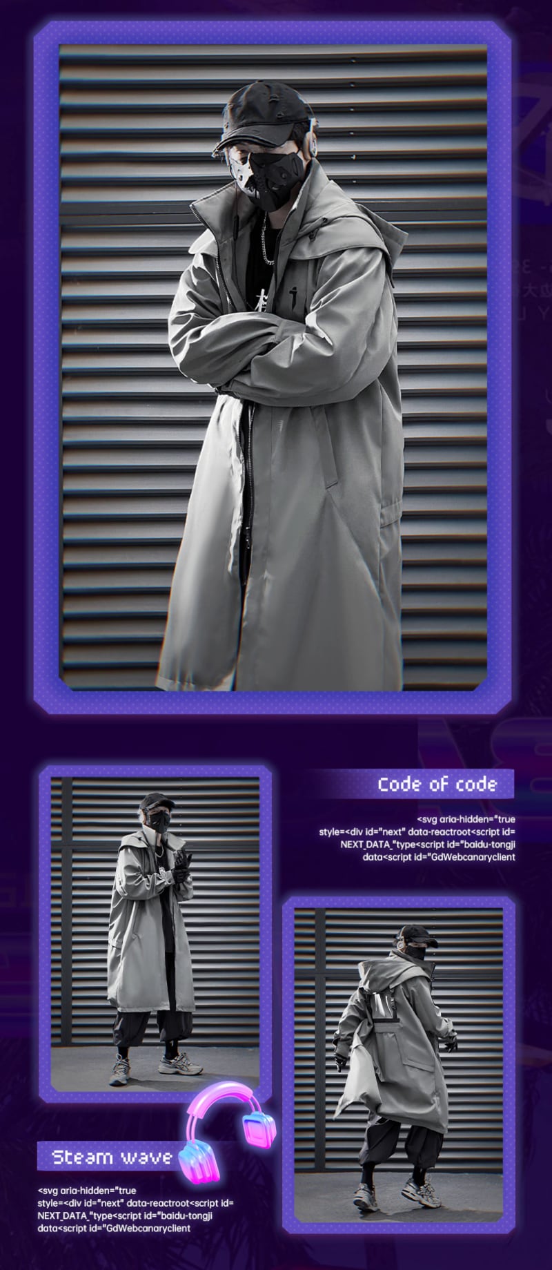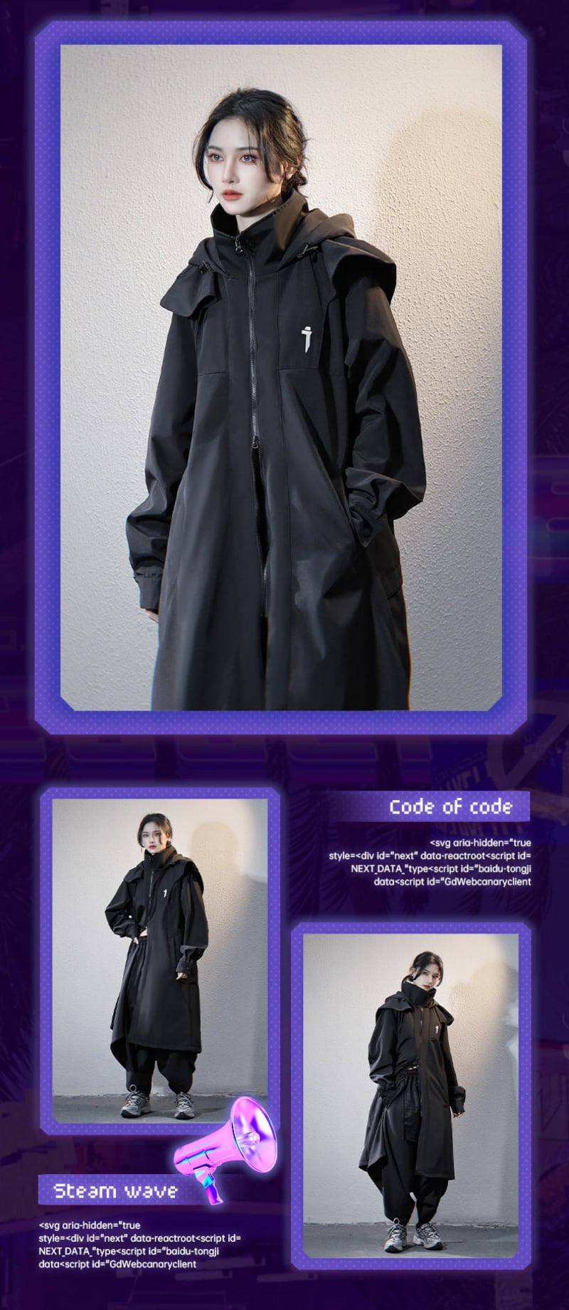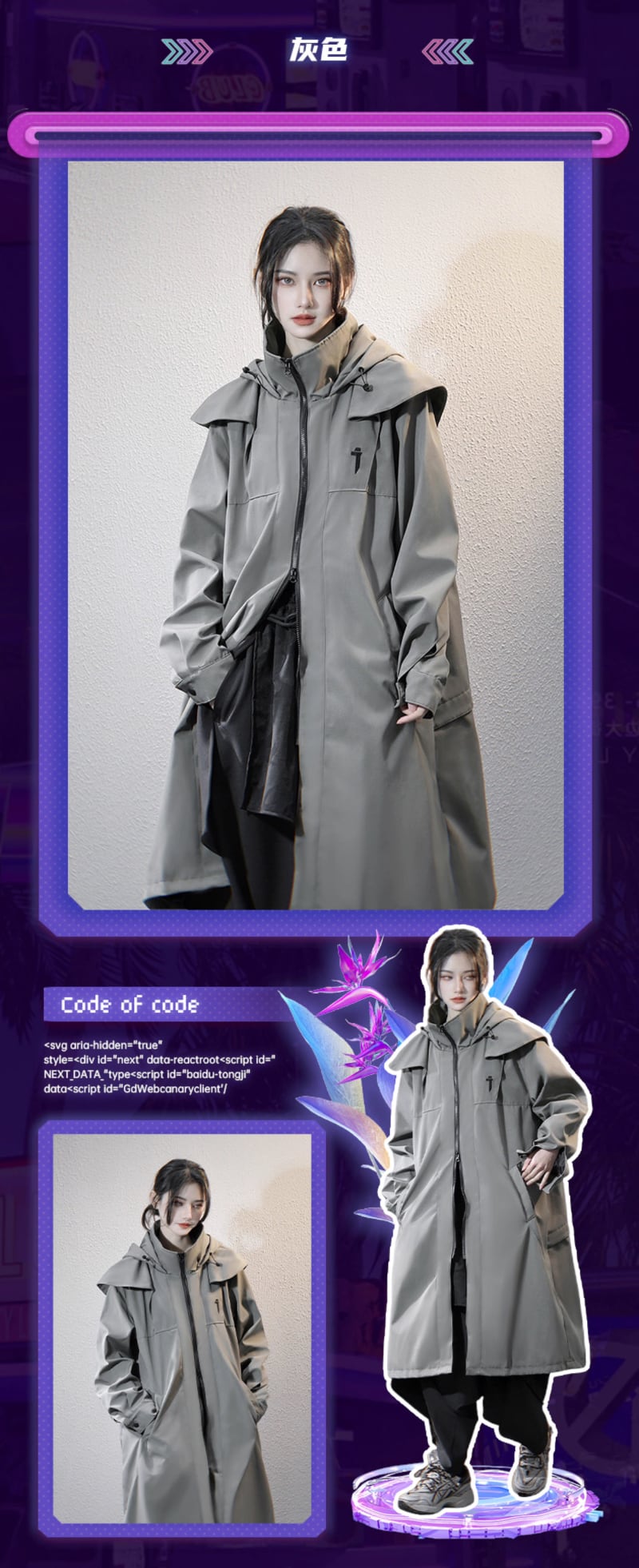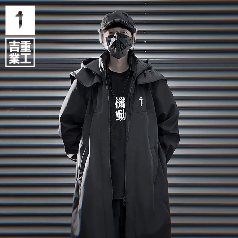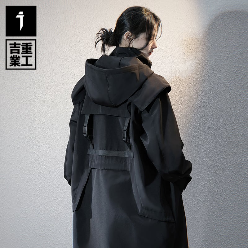 JIYEIND ダブルジッパーロングウインドブレーカー