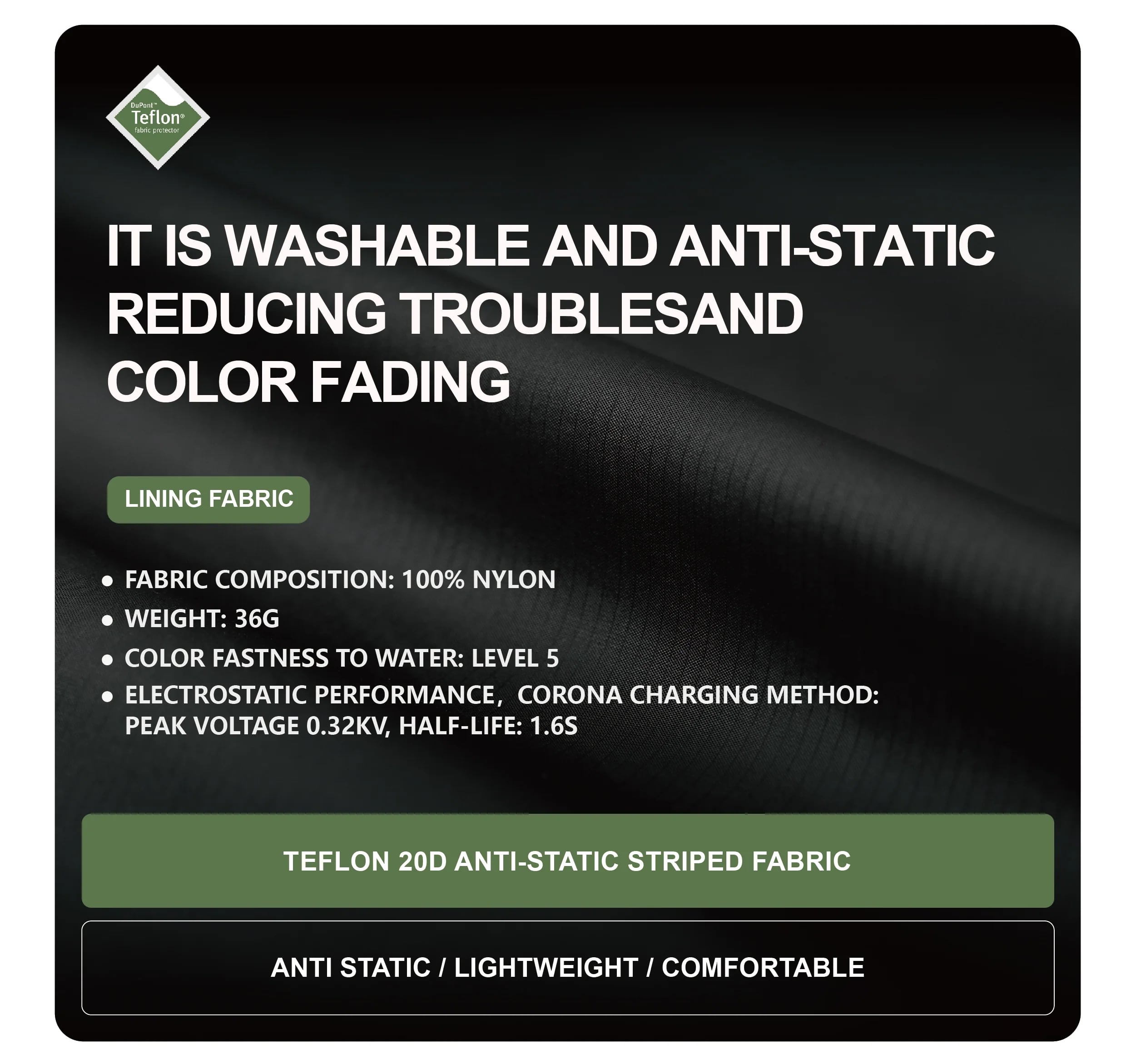 Teflon™(テフロン™)fabric protectorは、重量、見栄え、着心地、色、通気性を妨げることなく、様々な種類の生地に対応します