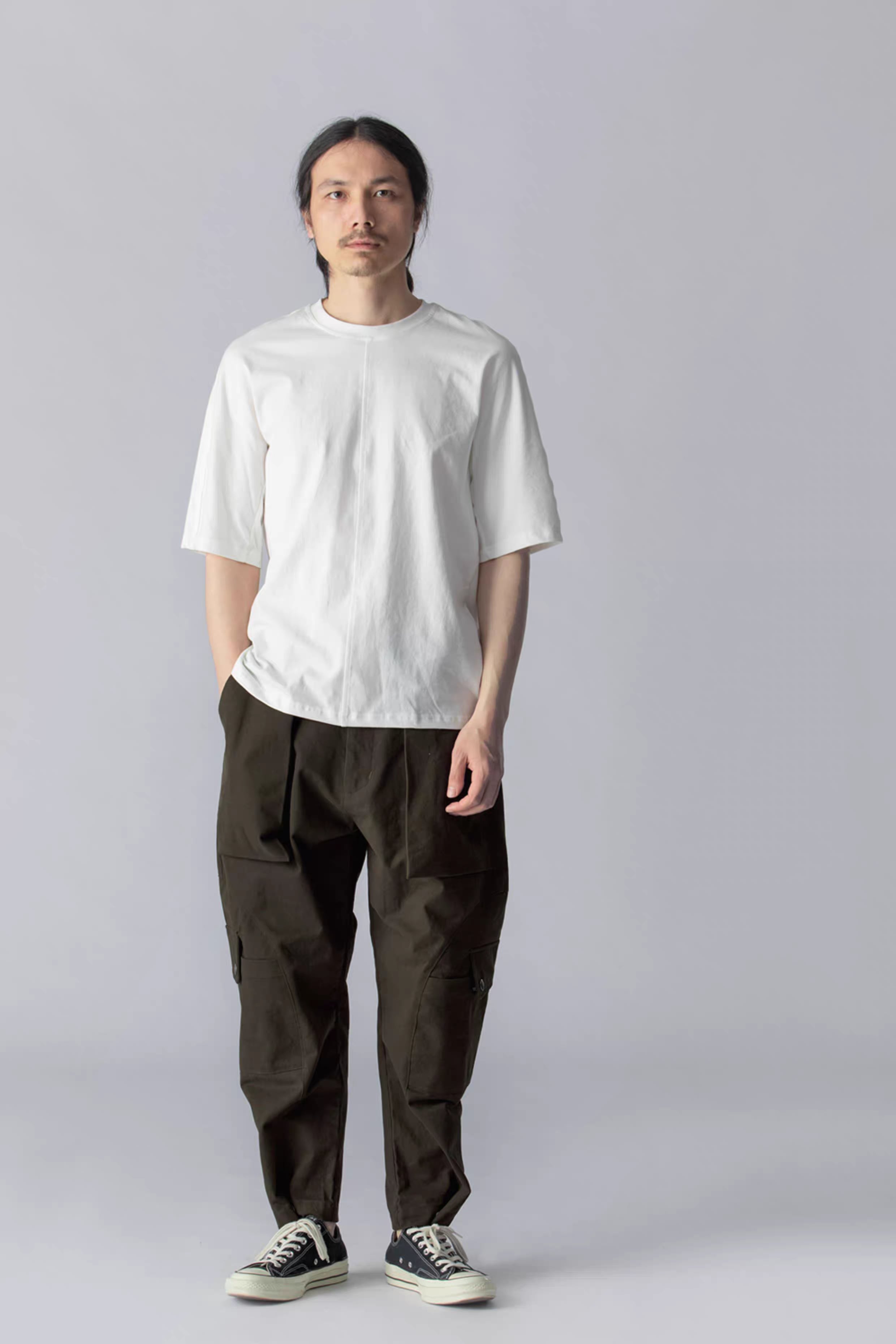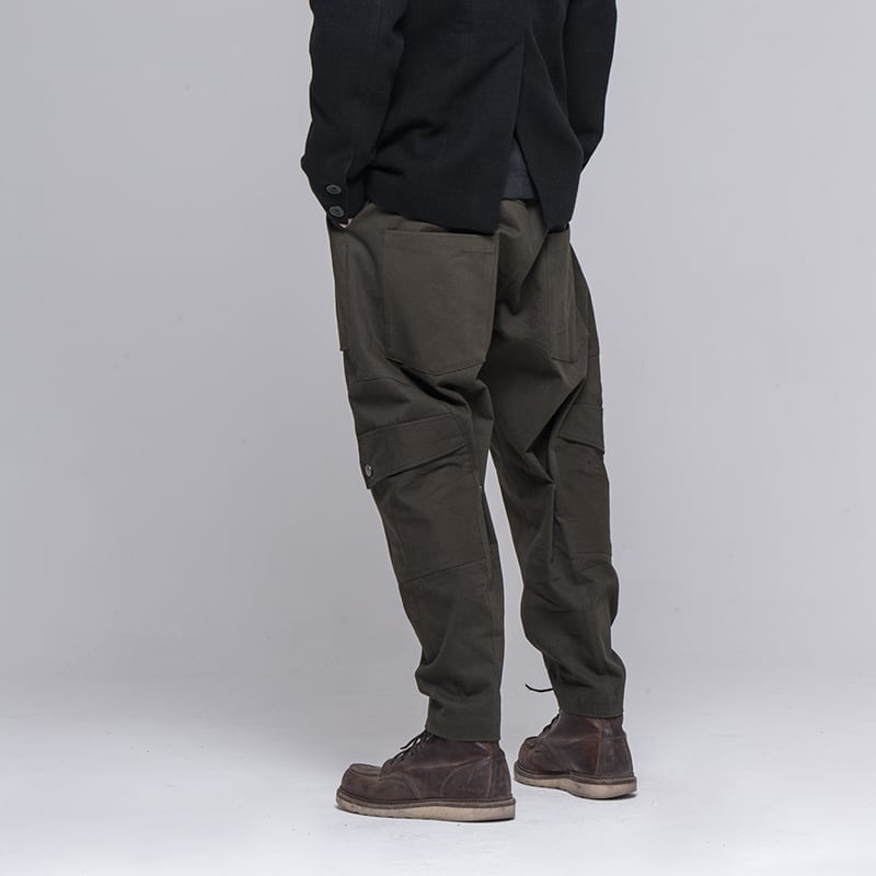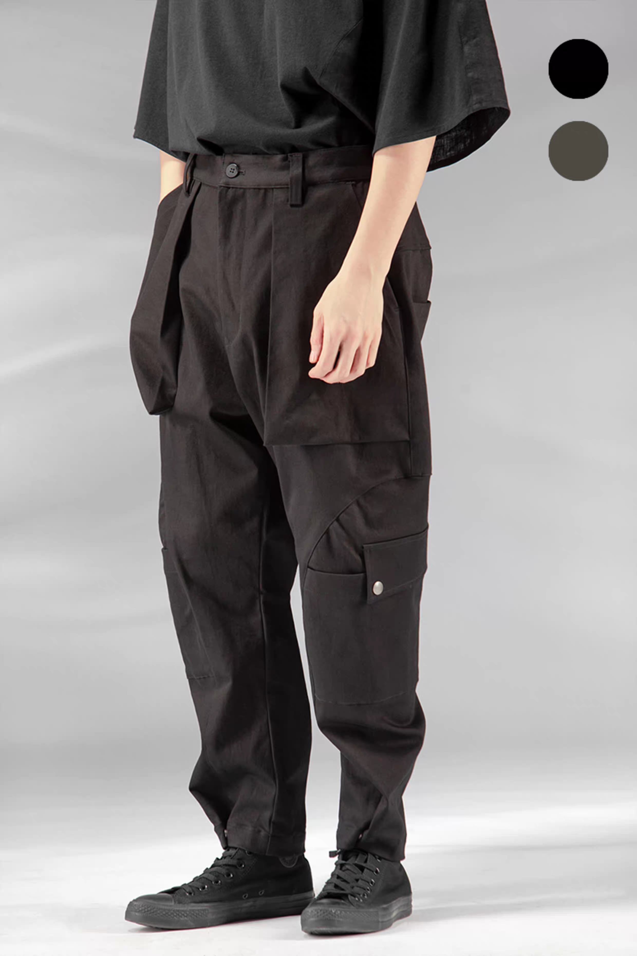 テーパードシルエットでやや股下が深めのサルエルパンツのような雰囲気