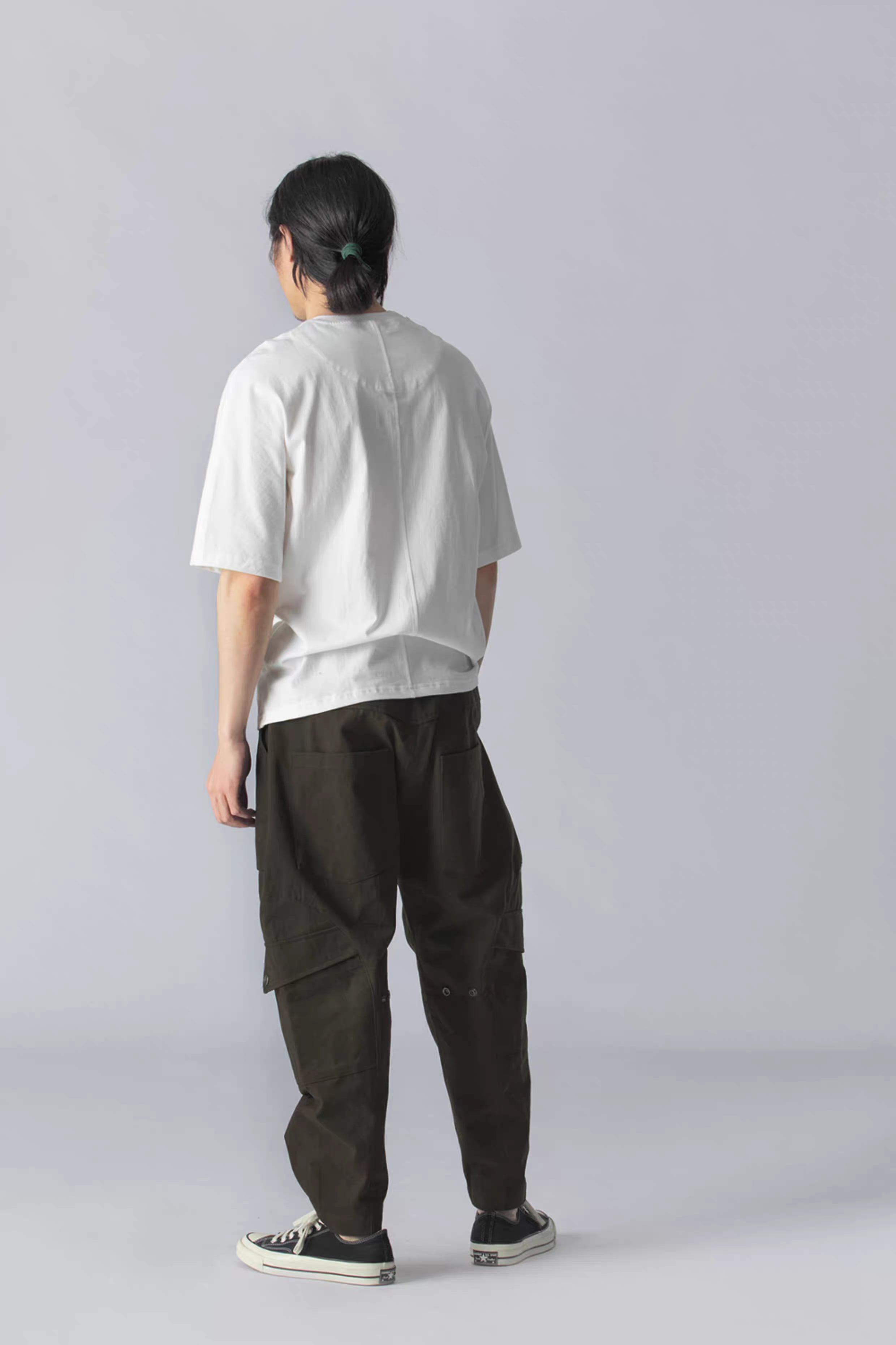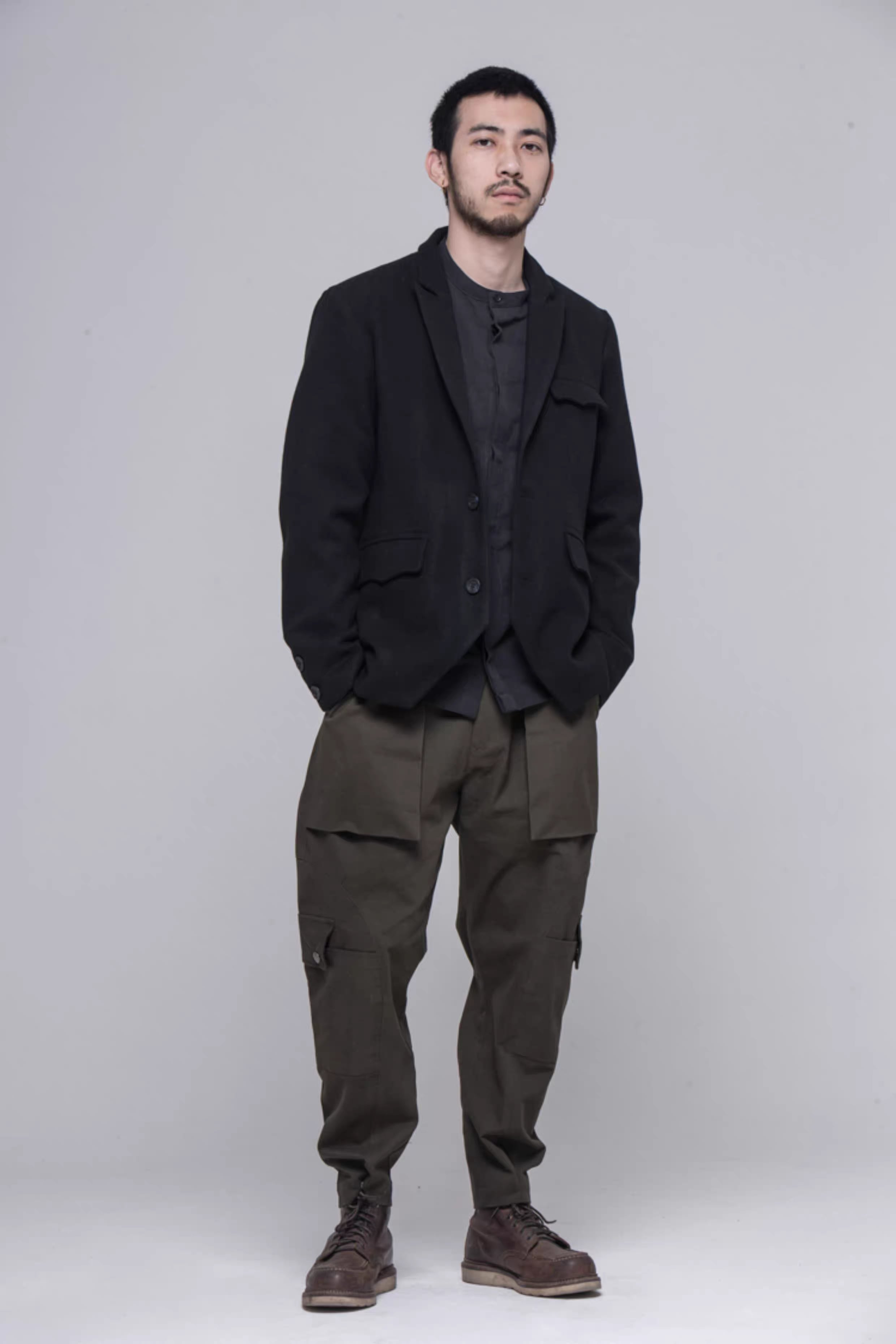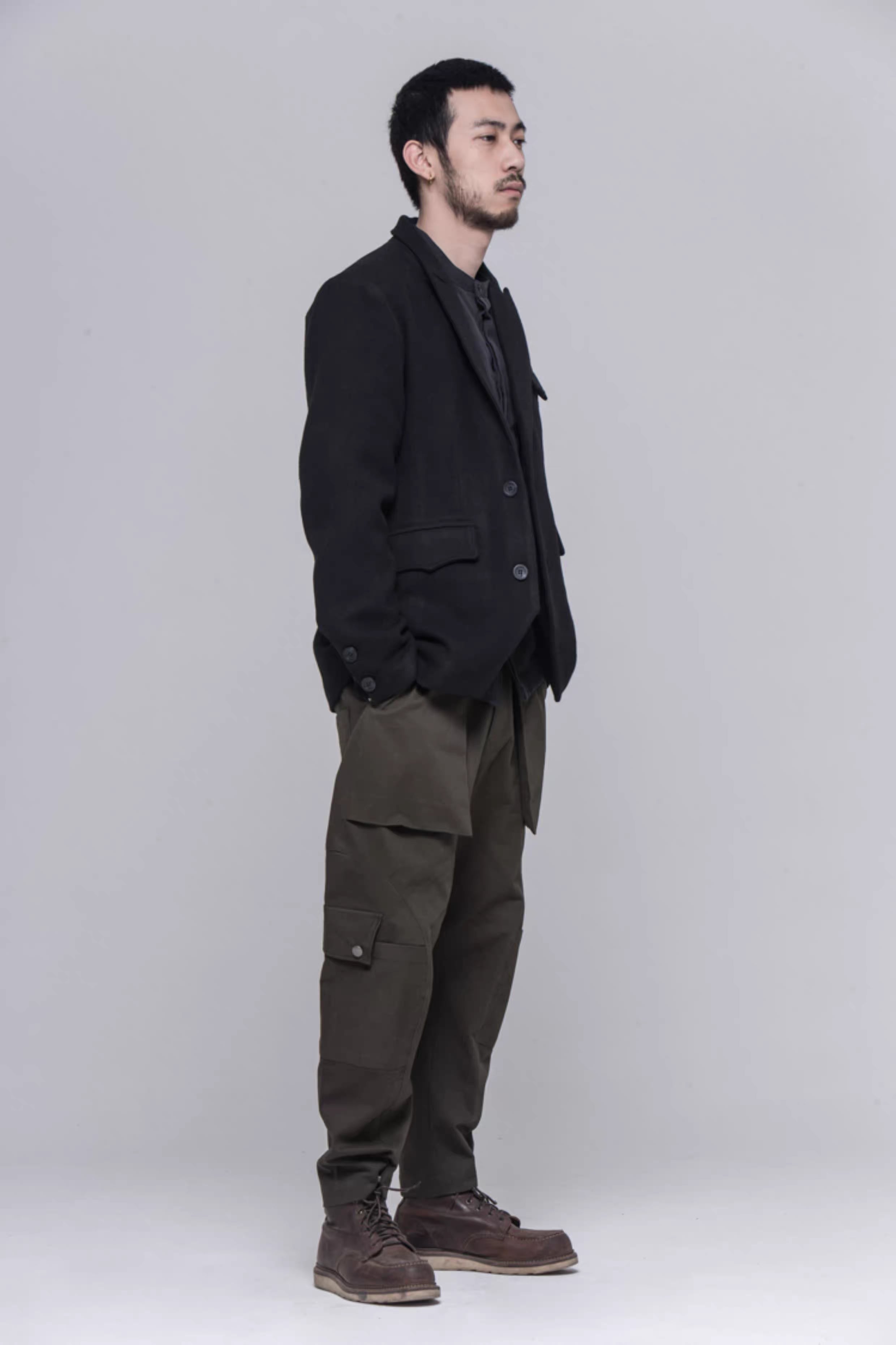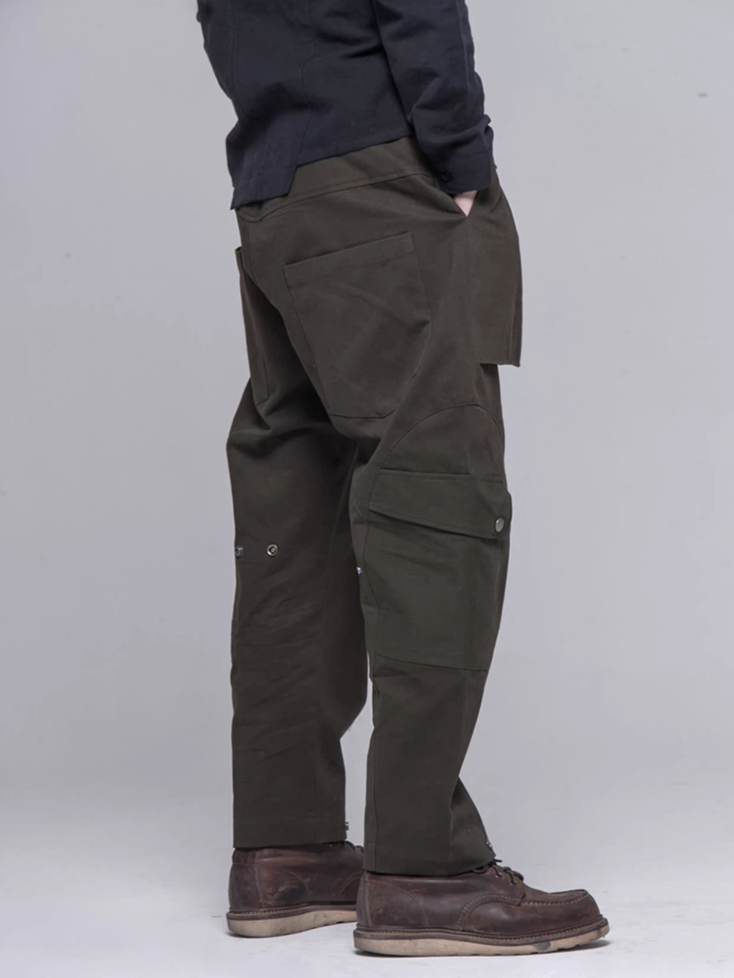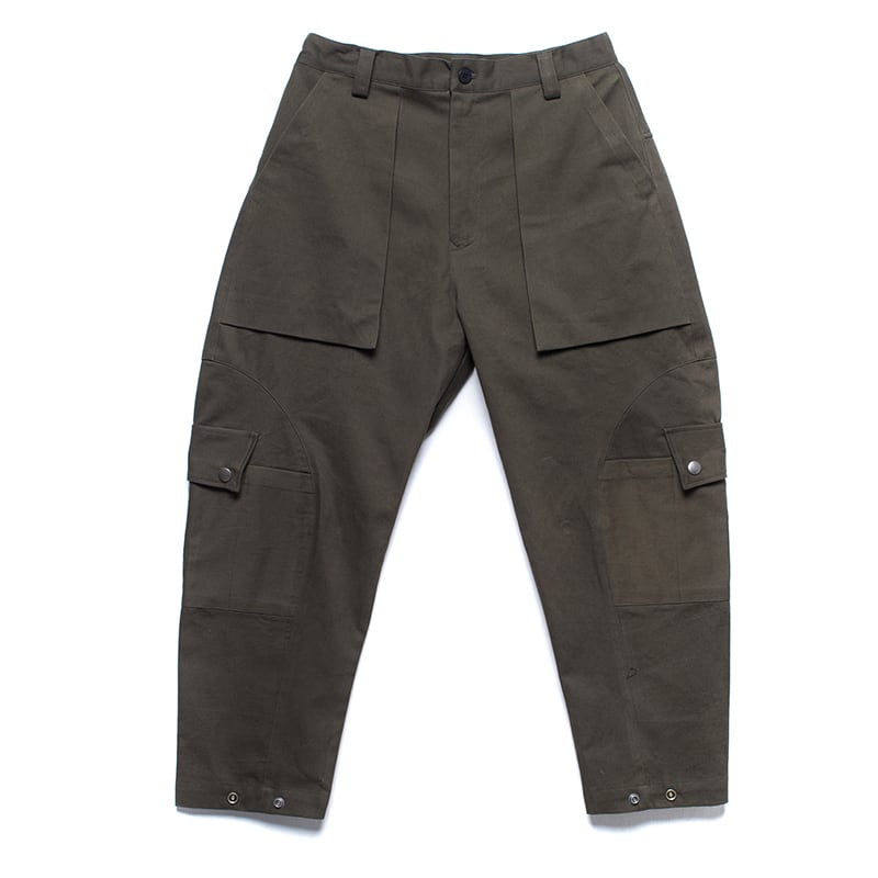 膝裏と裾部分のスナップフックによるシルエット可変機能で立体感を演出