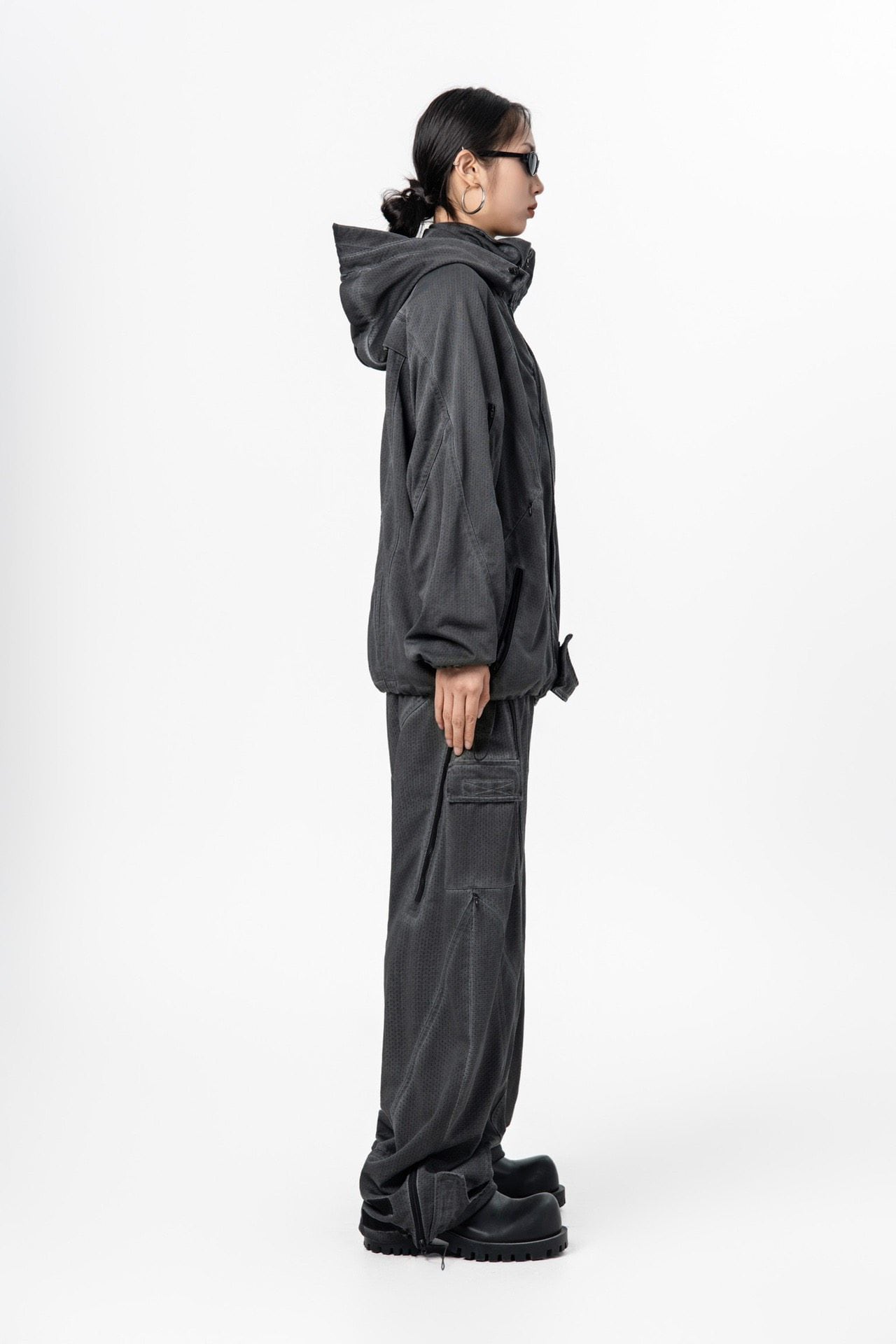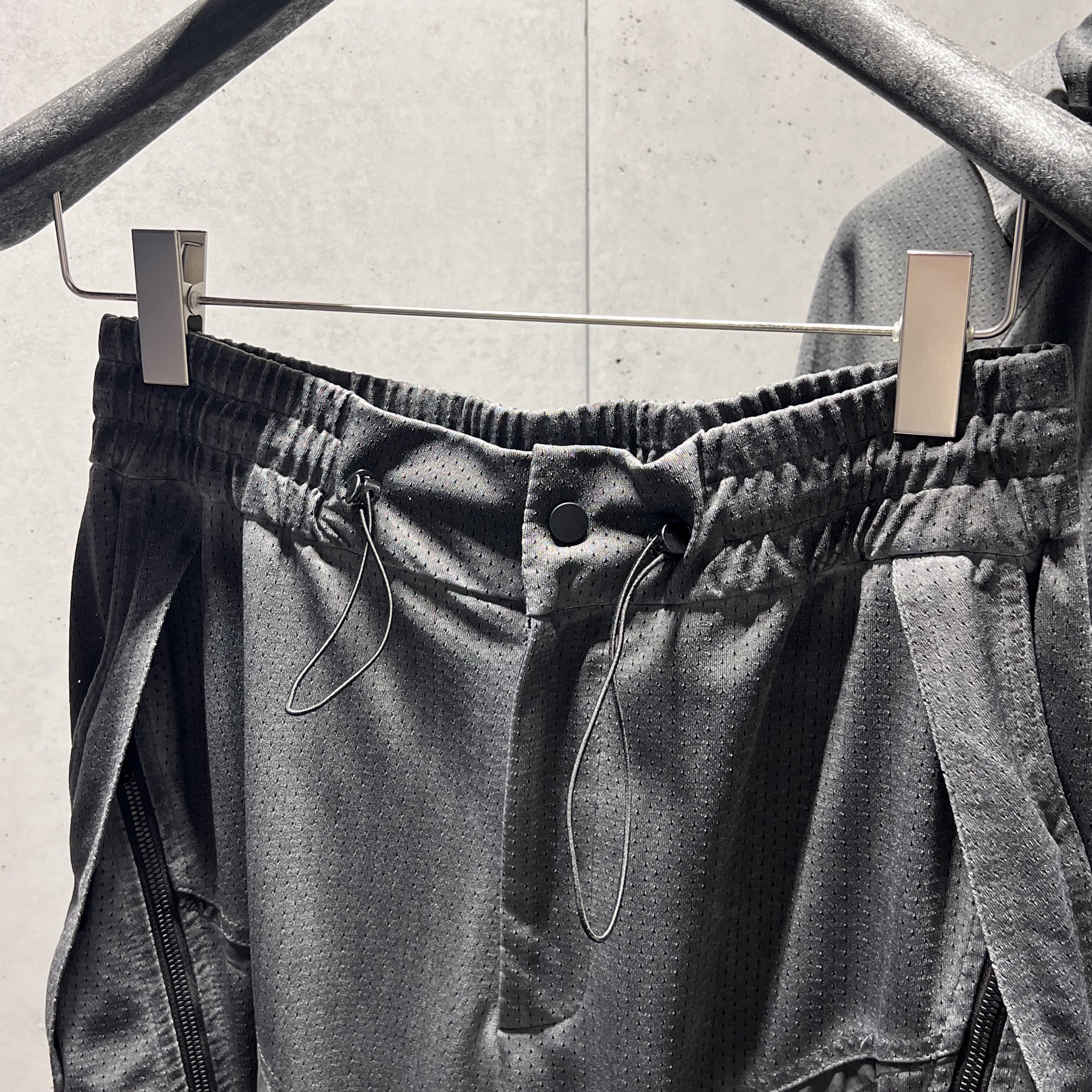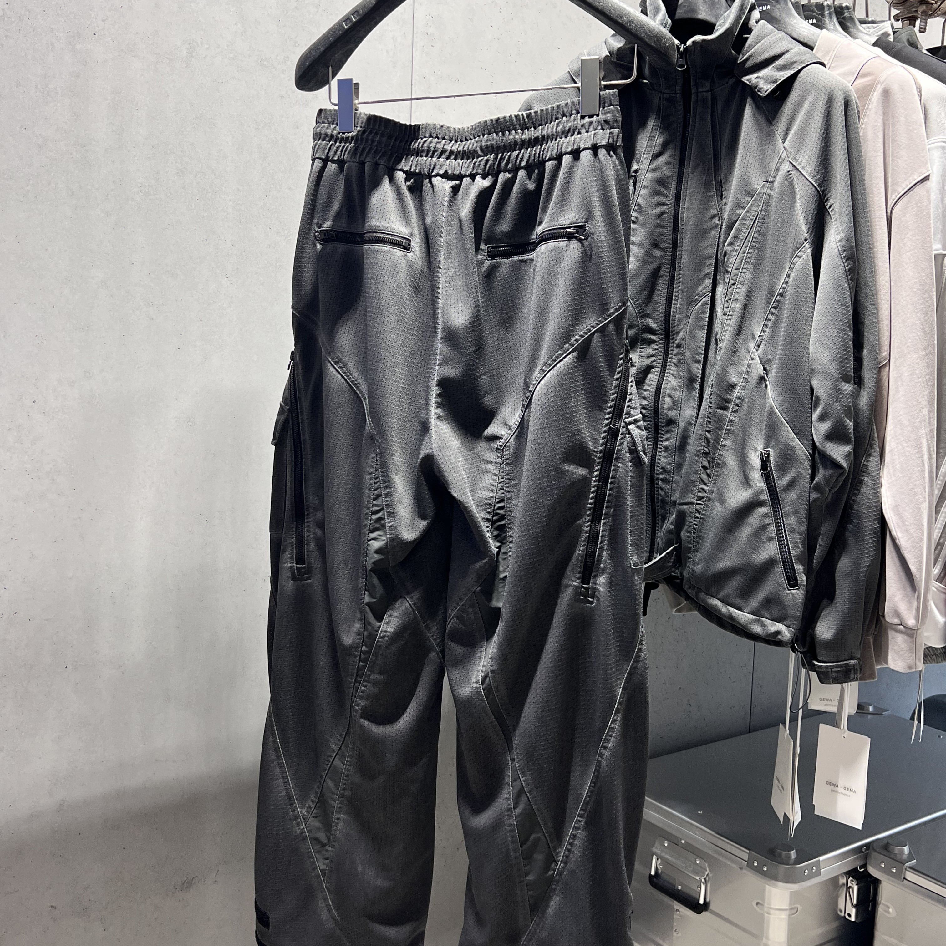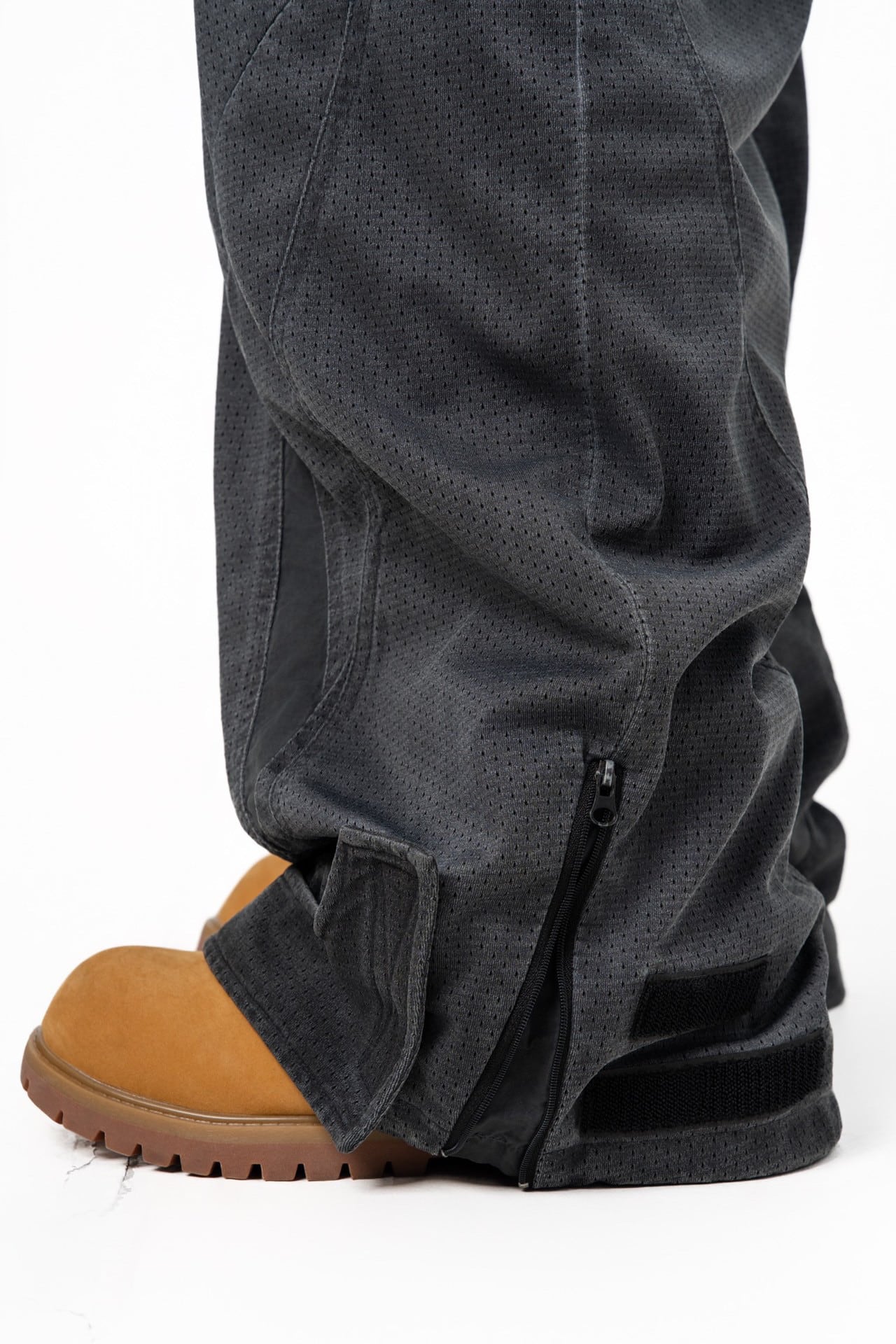 アウトドアと未来的デザインを融合したデコンストラクトパンツ。