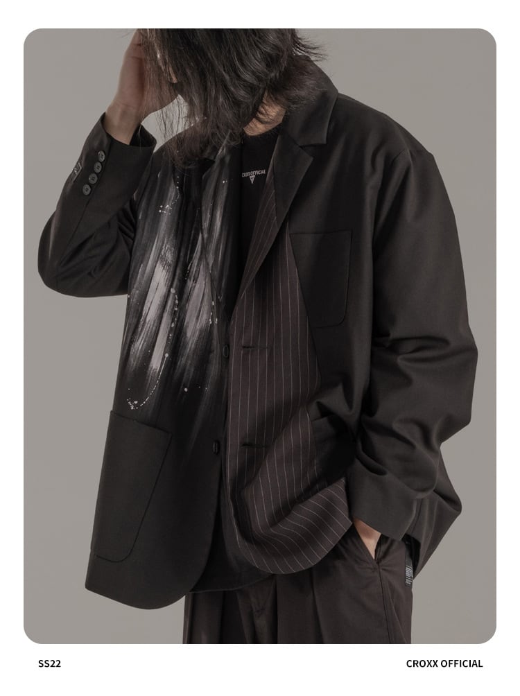 生地は厳選された360Gのスーツ生地を使用し、ドロップショルダーデザインを加えることで、全体の立体感とドレープ性がさらに向上しています