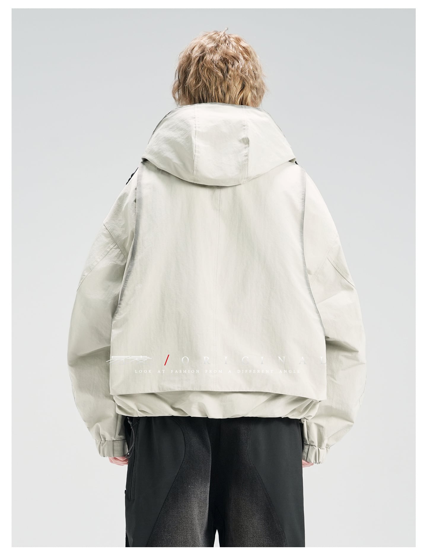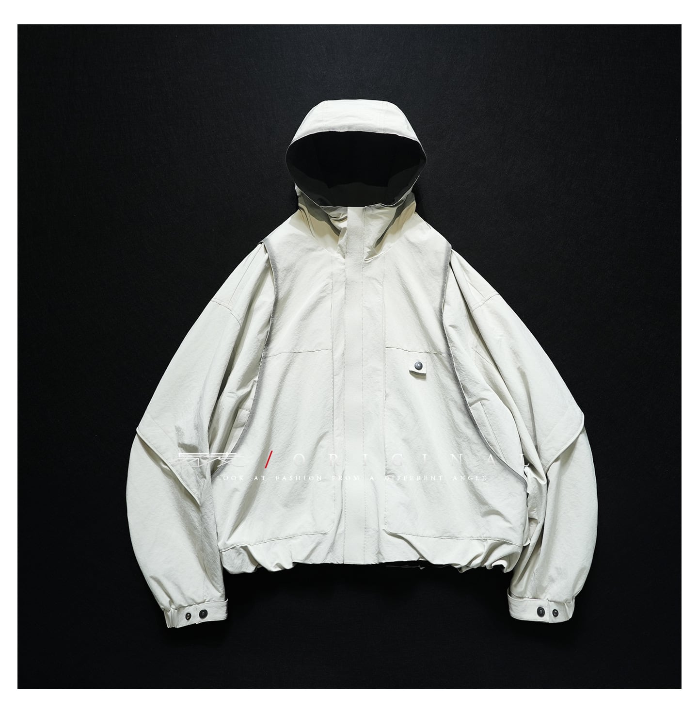 複数のパネルが描く複雑なカッティング 無機質な配色の境界線を再構築 都市の静寂に溶け込むワイドシルエット ■素材 ポリエステル100% ■生地厚み 普通(春秋) ■フィッティング オーバーサイズ ■サイズ(cm) M:着丈65 / 胸囲137 / そで丈56.9 / 肩幅62.5 L:着丈67 / 胸囲141 / そで丈57.7 / 肩幅64 XL:着丈69 / 胸囲145 / そで丈58.5 / 肩幅65.5 2XL:着丈71 / 胸囲149 / そで丈59.3 / 肩幅67 ■参考サイズ M:身長160-170cm / 体重45-65kg L:身長170-175cm / 体重60-75kg XL:身長175-180cm / 体重70-85kg 2XL:身長180-185cm / 体重85-100kg ■モデル情報 モデルスペック記載なし