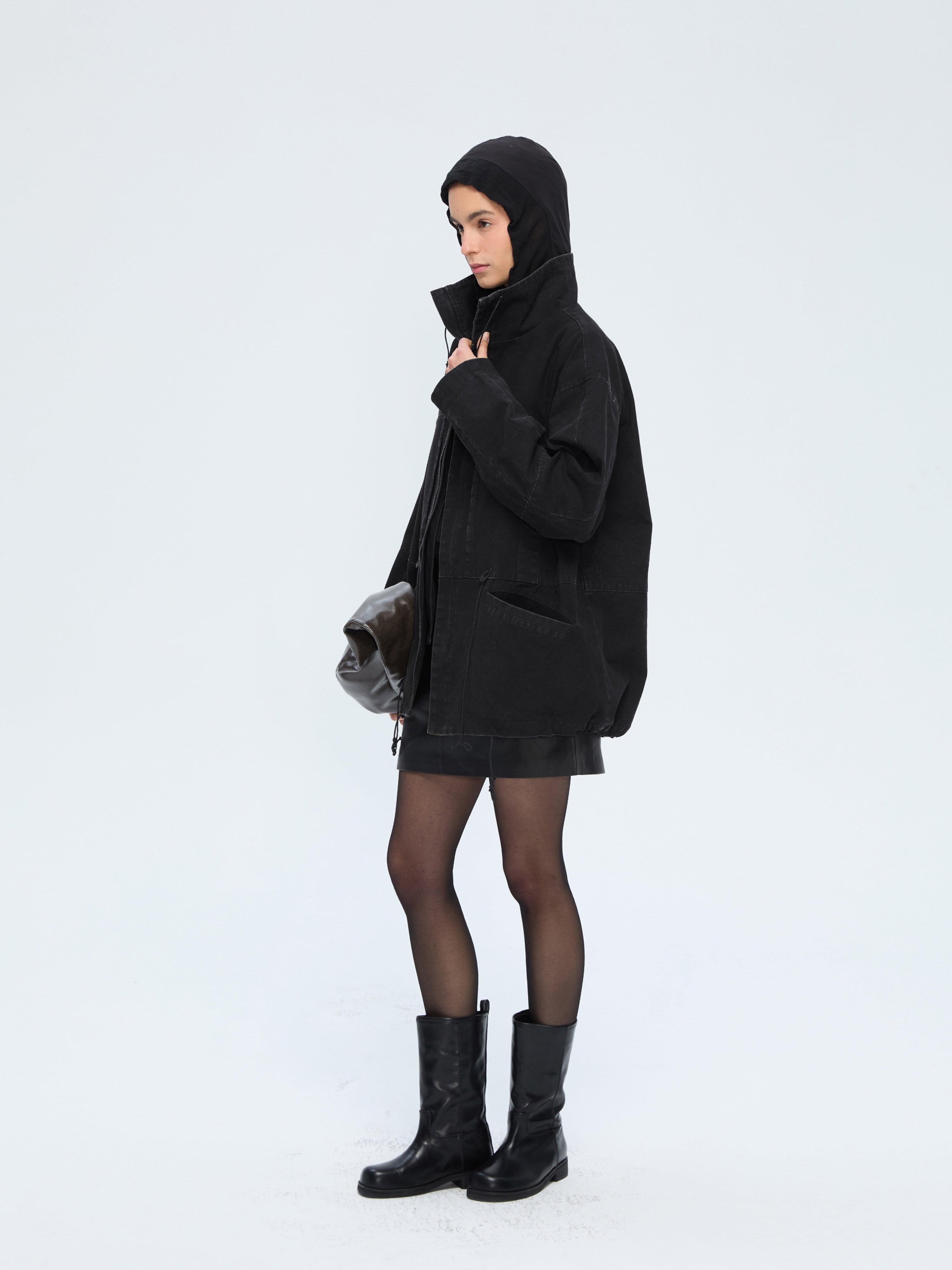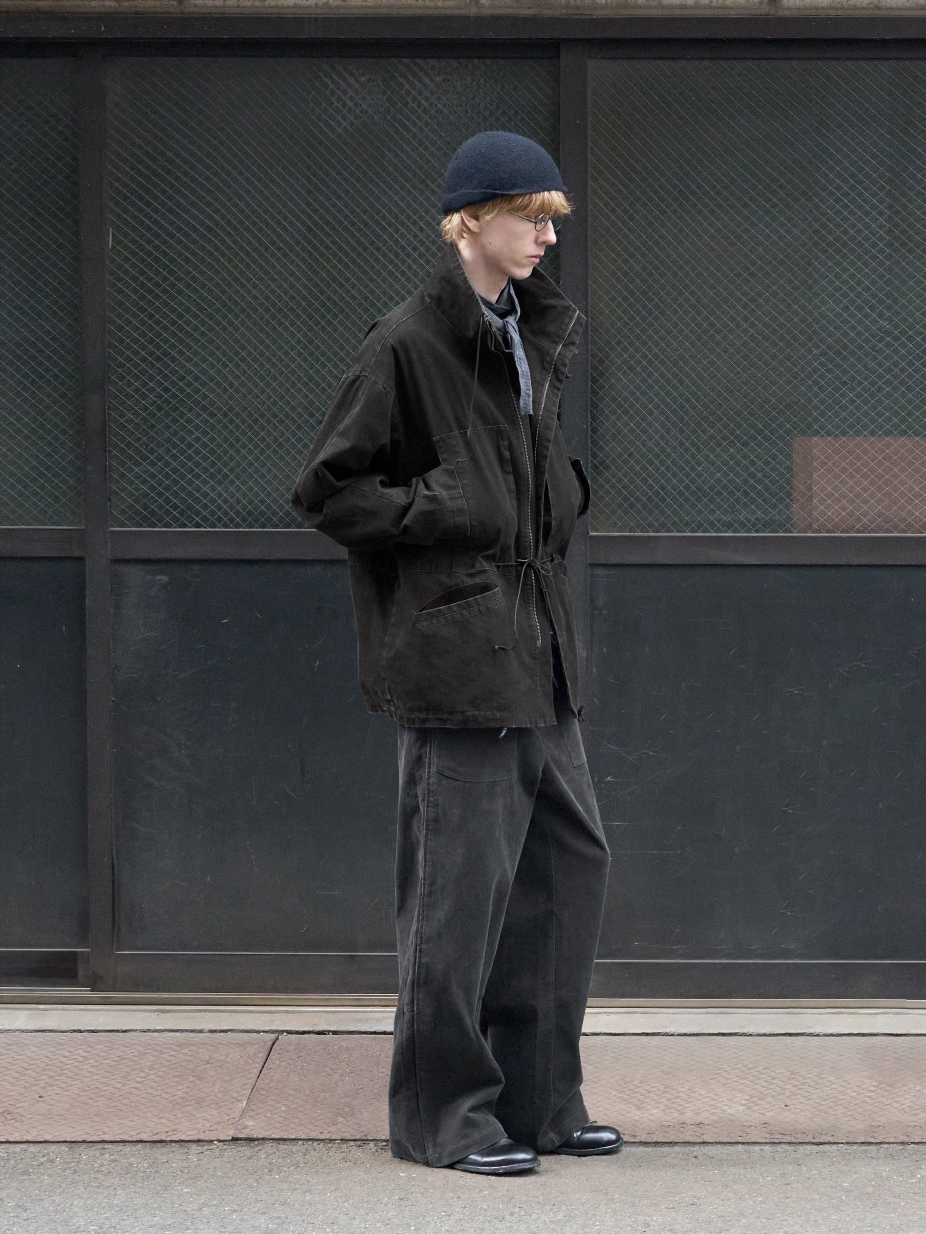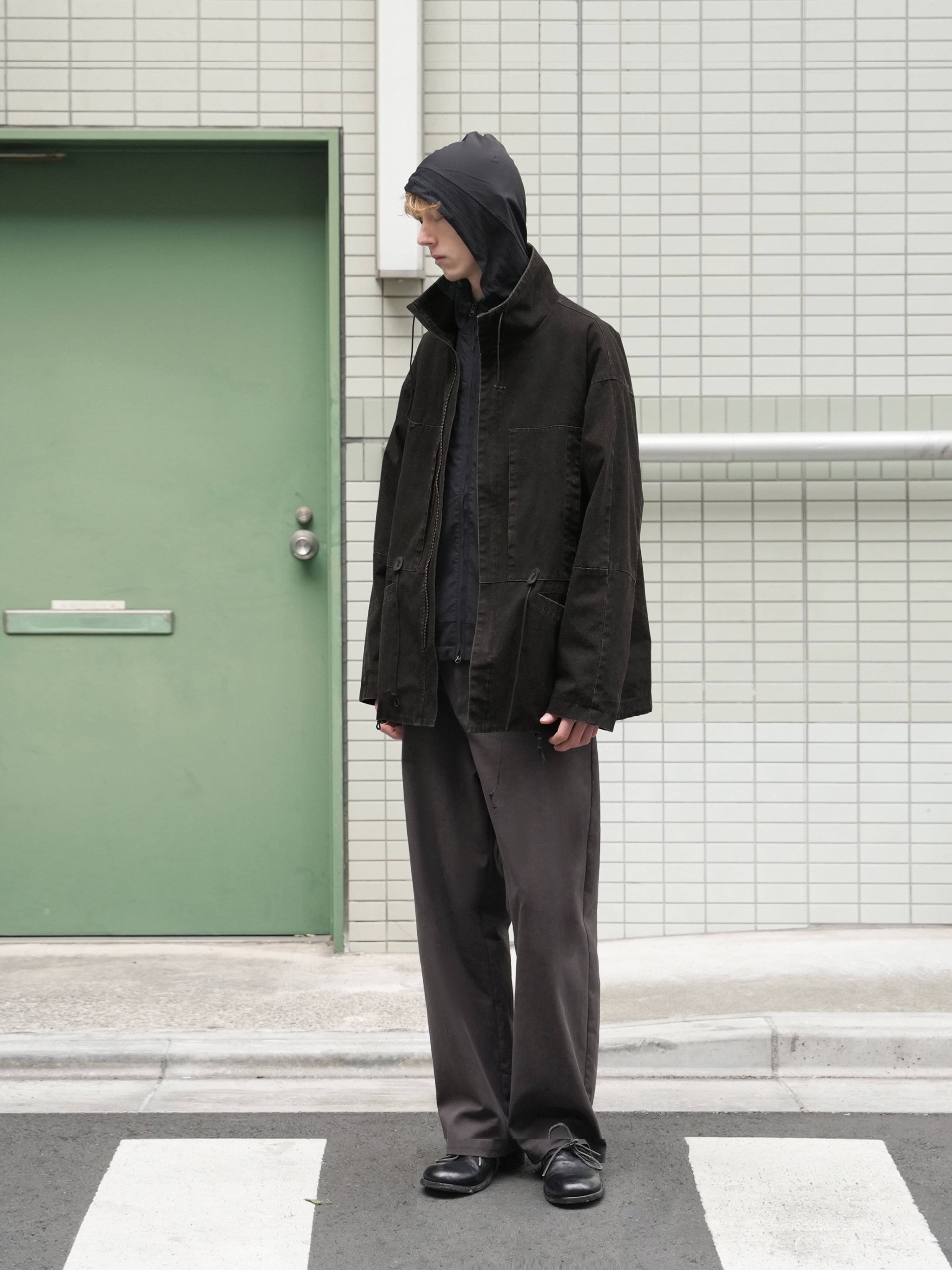 都市の風景に溶け込むワイドなボックスシルエット