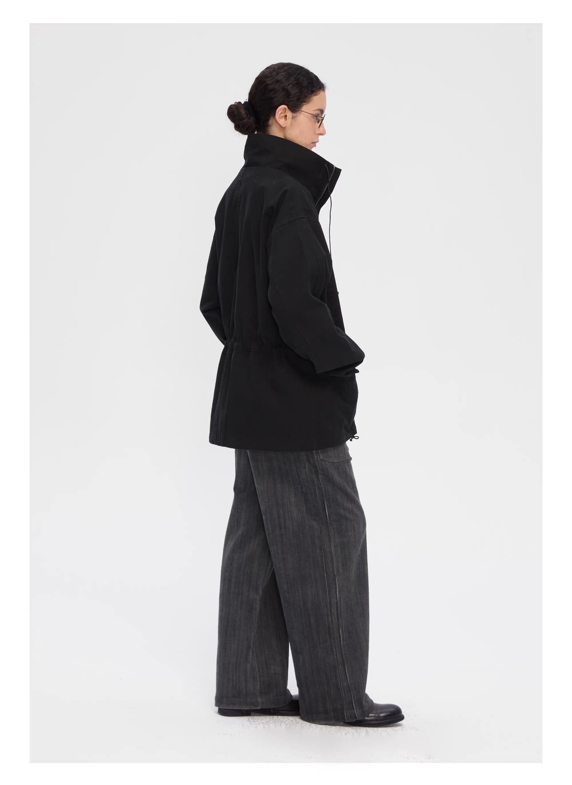 首元はミニマルなスタンドカラー