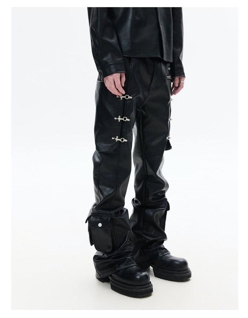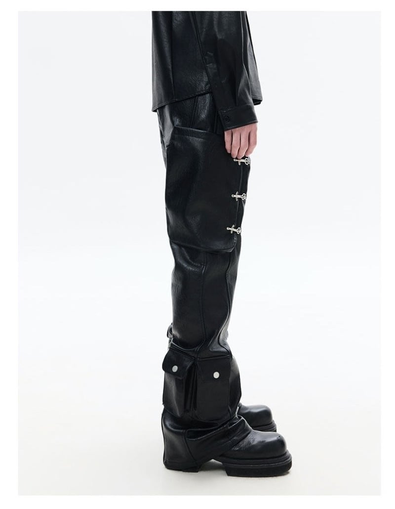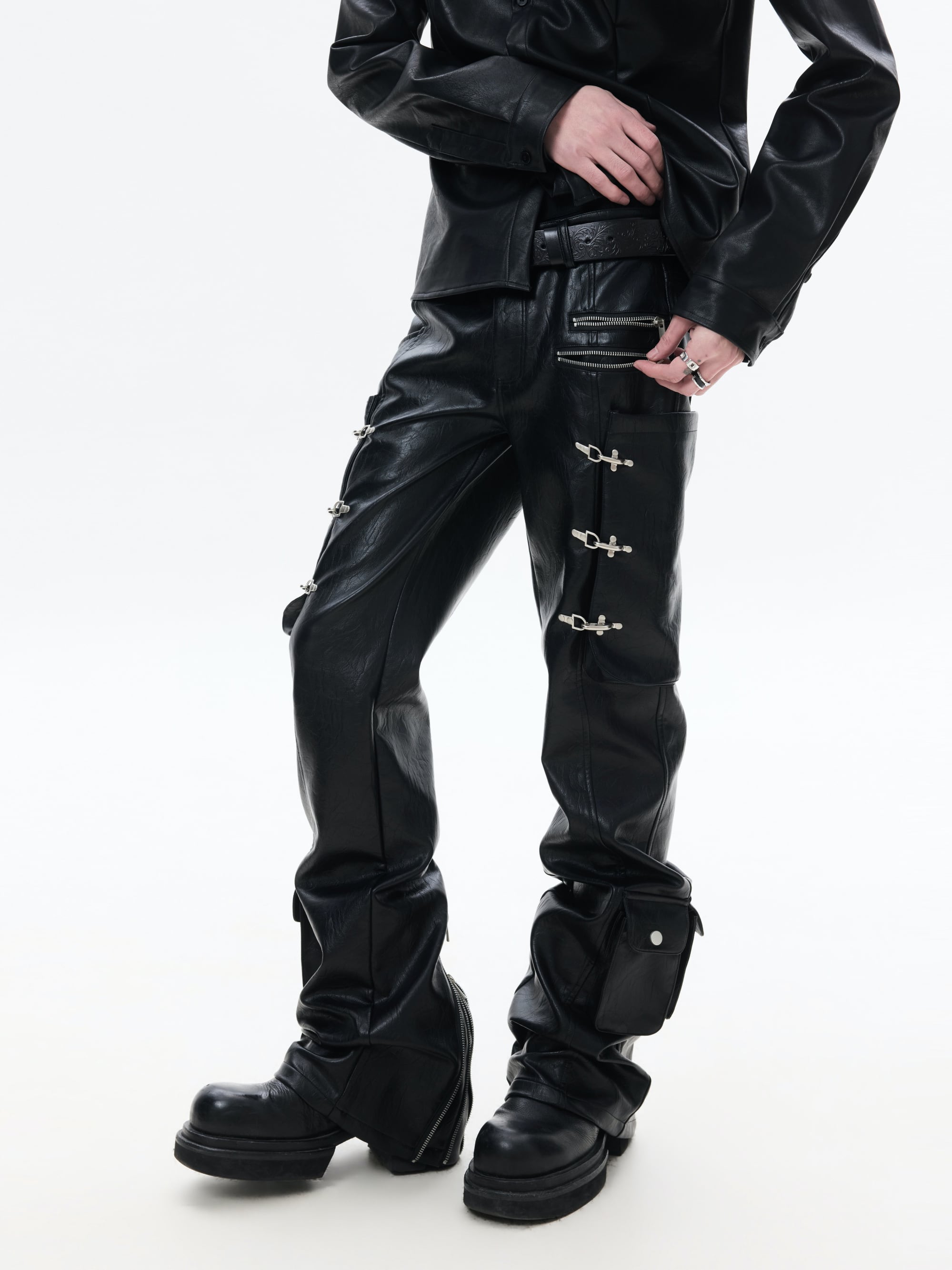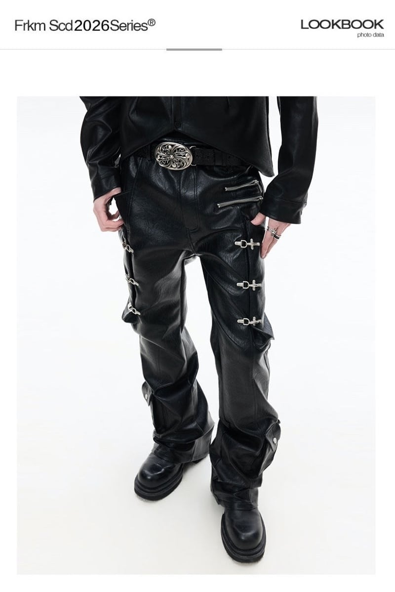 FRKM SCD 26SS ファイヤーマンフックPUレザーフレアパンツ