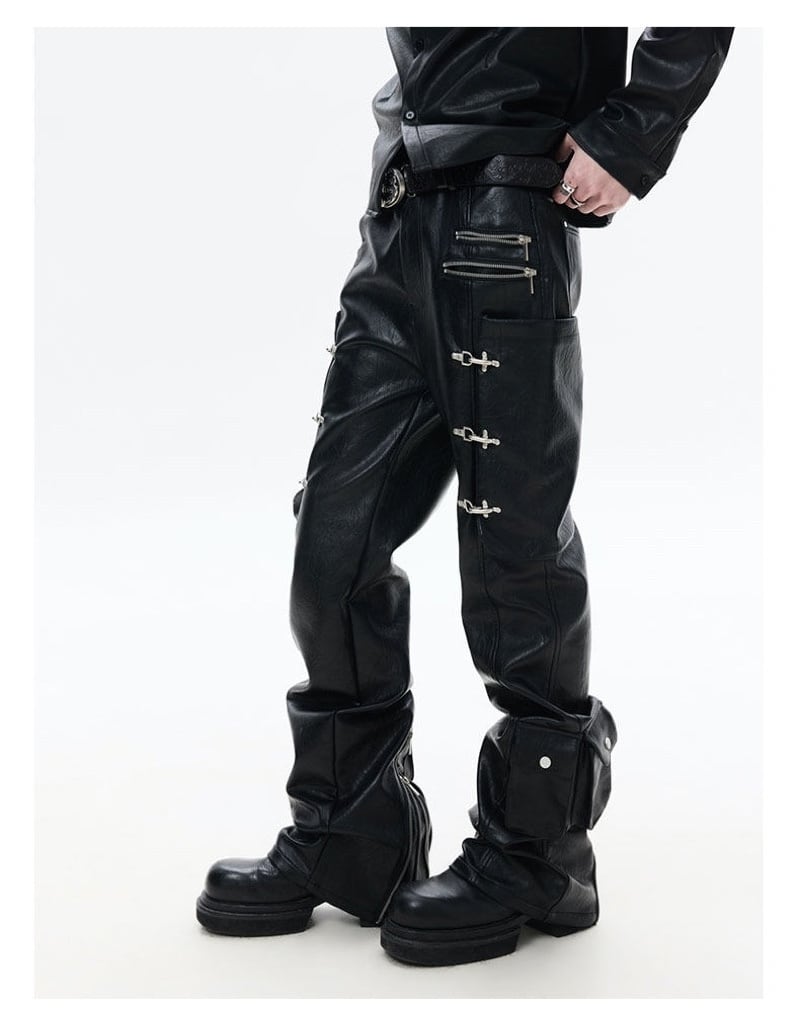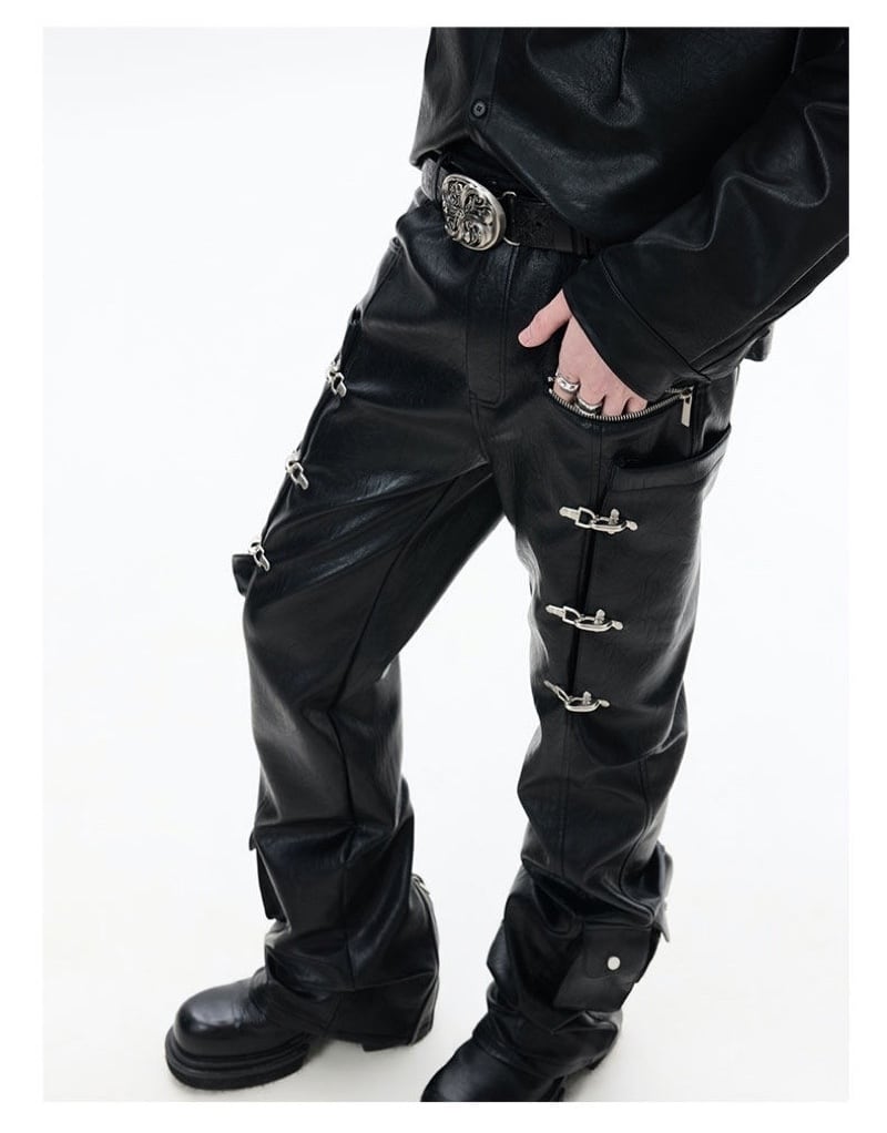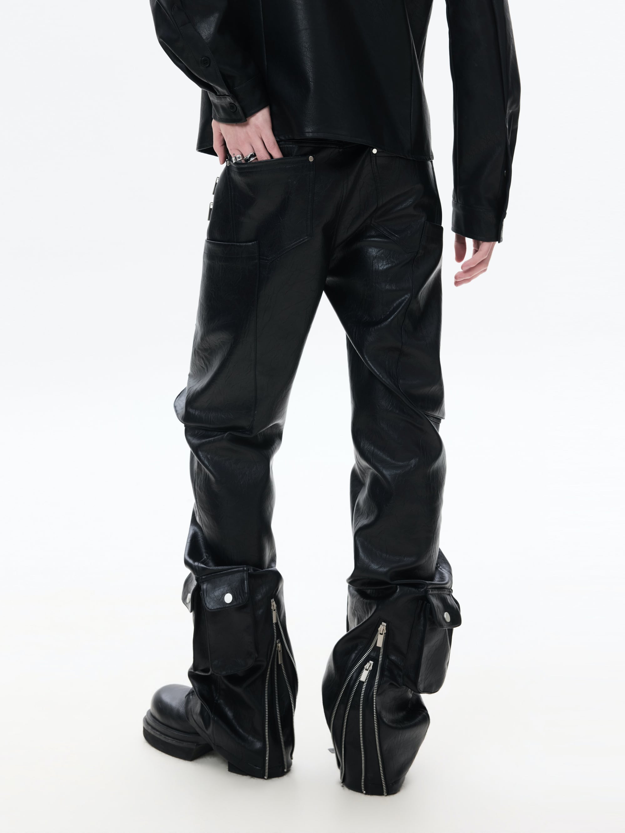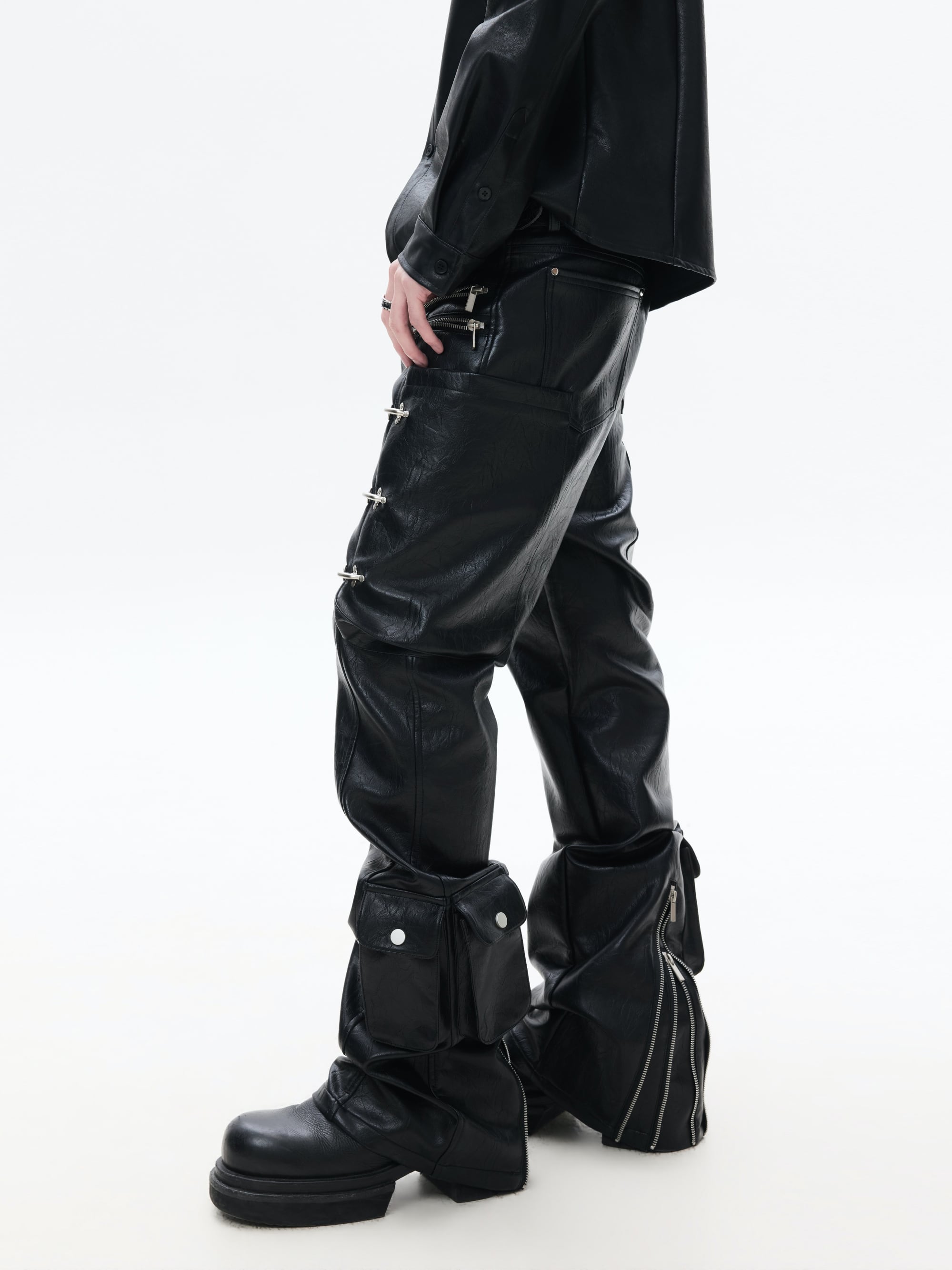 FRKM SCD 26SS ファイヤーマンフックPUレザーフレアパンツ