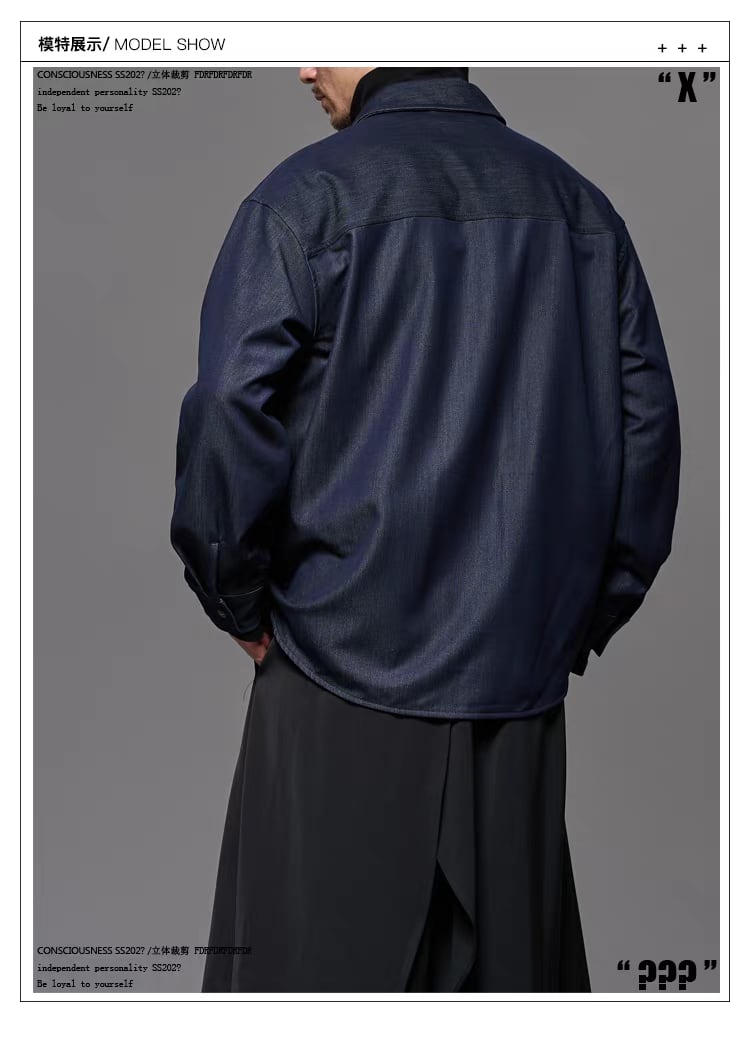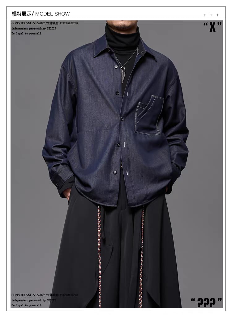 日本のレトロな感性と現代的なワークウェアの要素を融合させたデザイナーズシャツです 特徴的なスクエアカラーと立体裁断によるリラックスしたシルエットがアーティスティックな雰囲気を演出します シワになりにくく通気性に優れた素材を採用し、明線装飾のディテールが洗練された印象を与えます 男女問わず着用可能なユニセックスデザインで、春秋のメインアイテムとして活躍する一着です