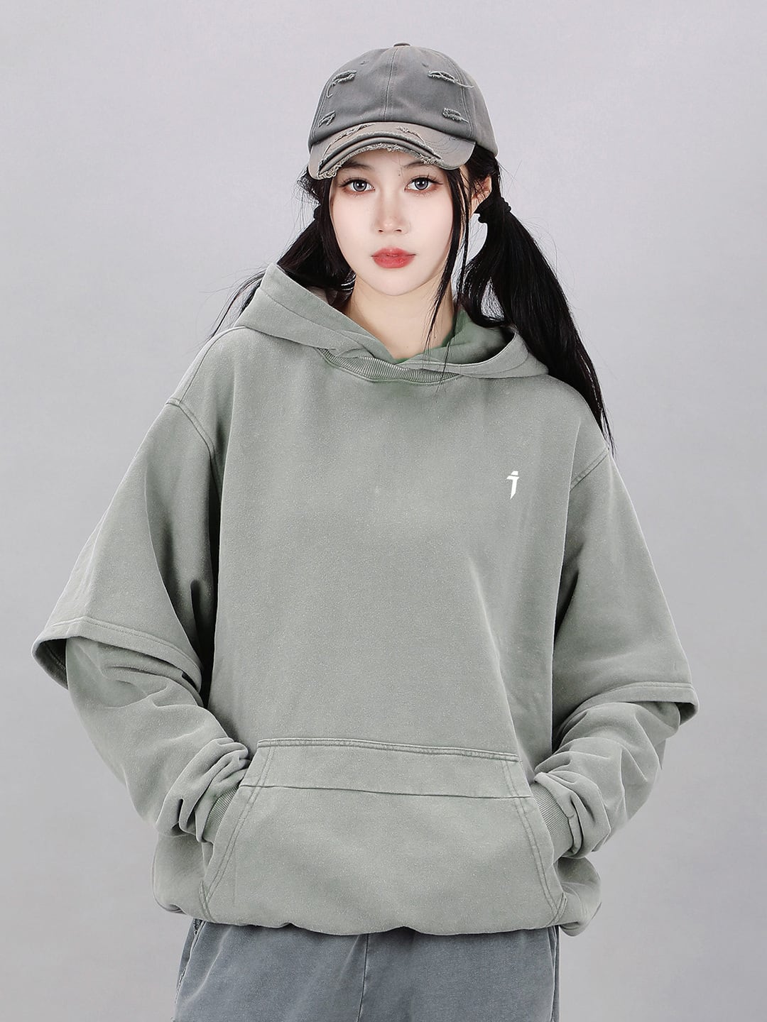 JIYEIND ウォッシュフェイクツーピースパーカー