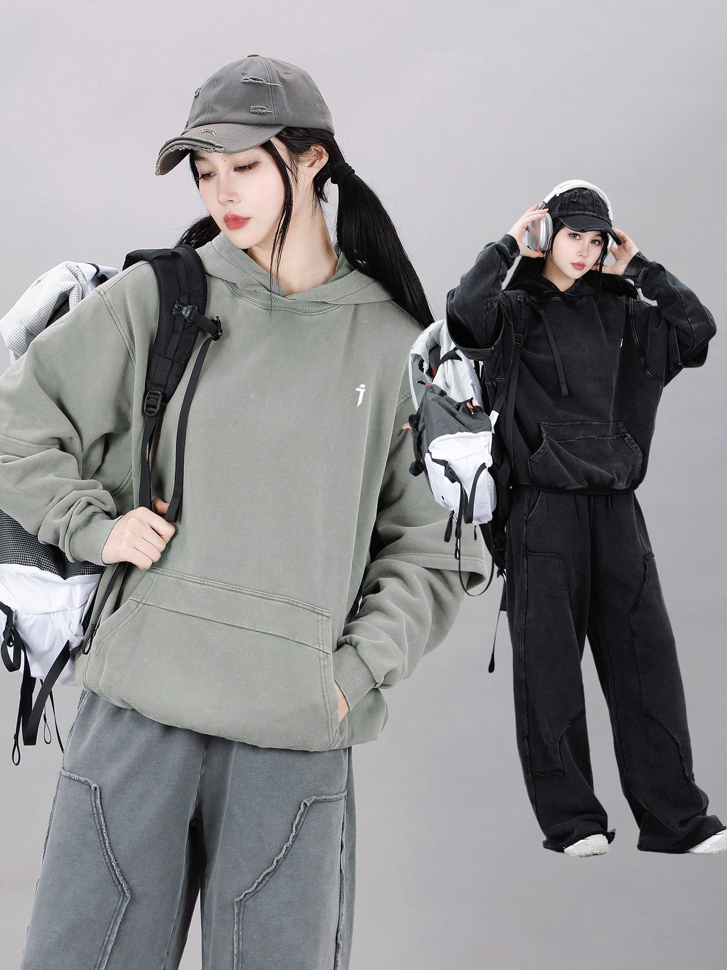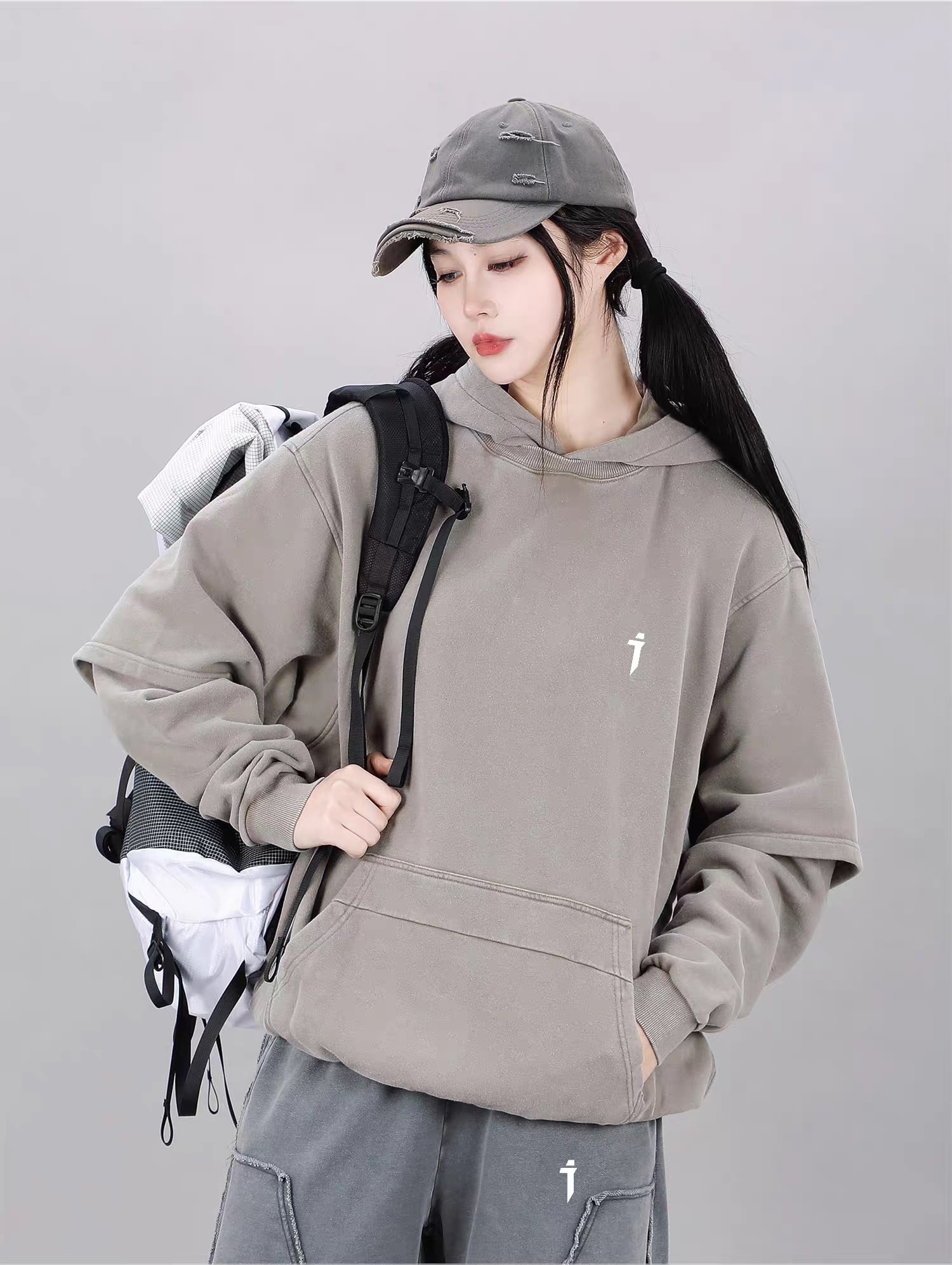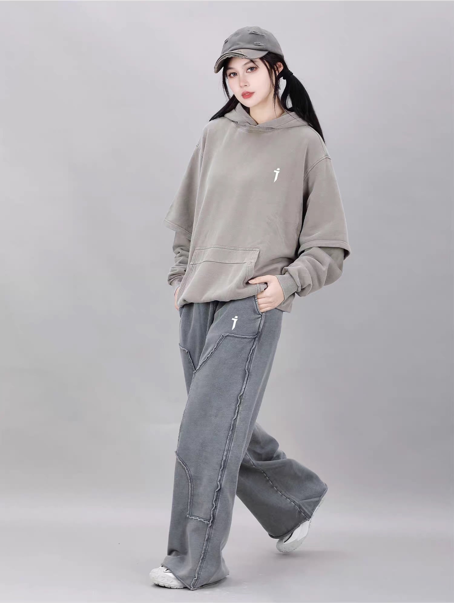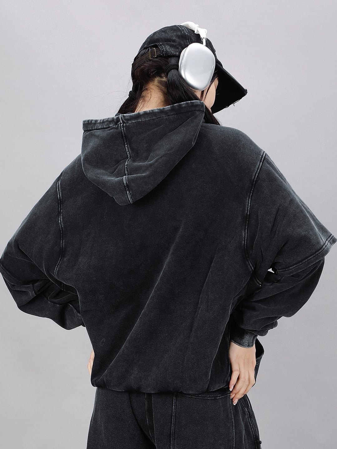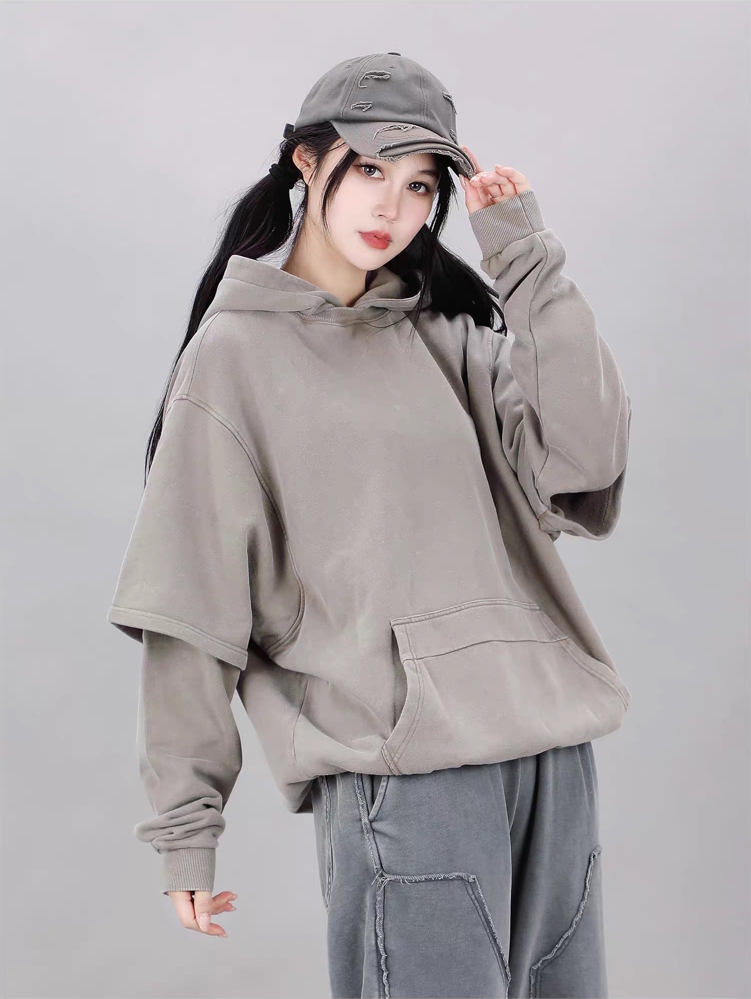 ゆったりとしたドロップショルダーのシルエットが現代的なストリート感を演出します