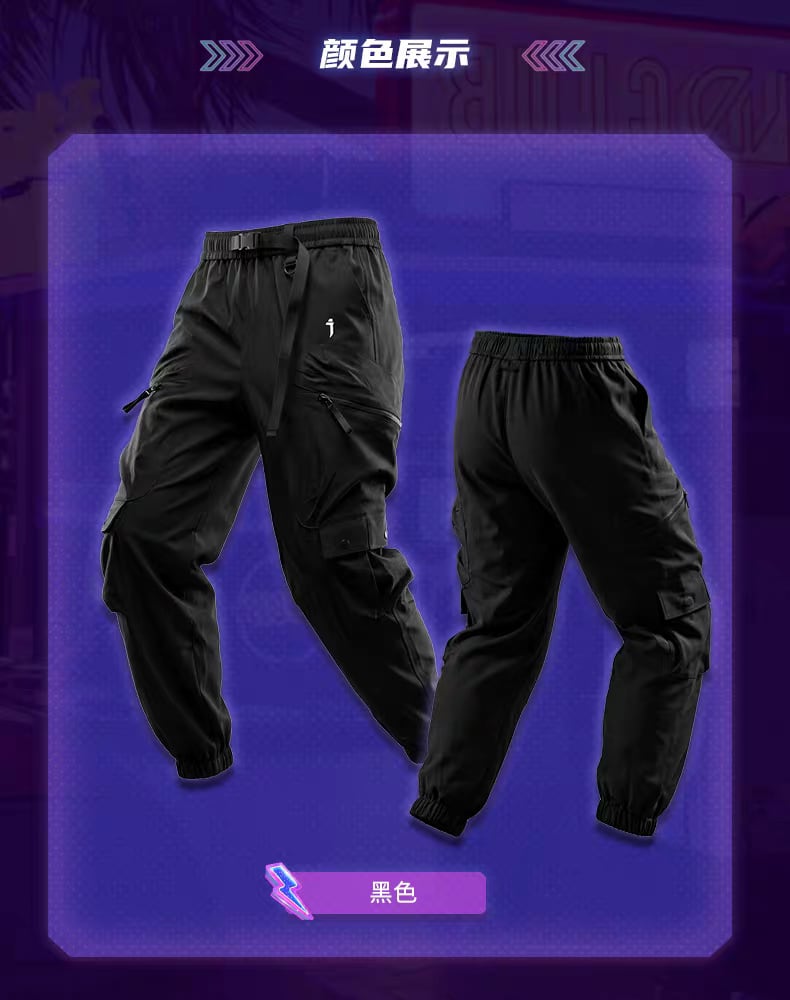 JIYEIND ブラックサムライマルチポケットパンツ