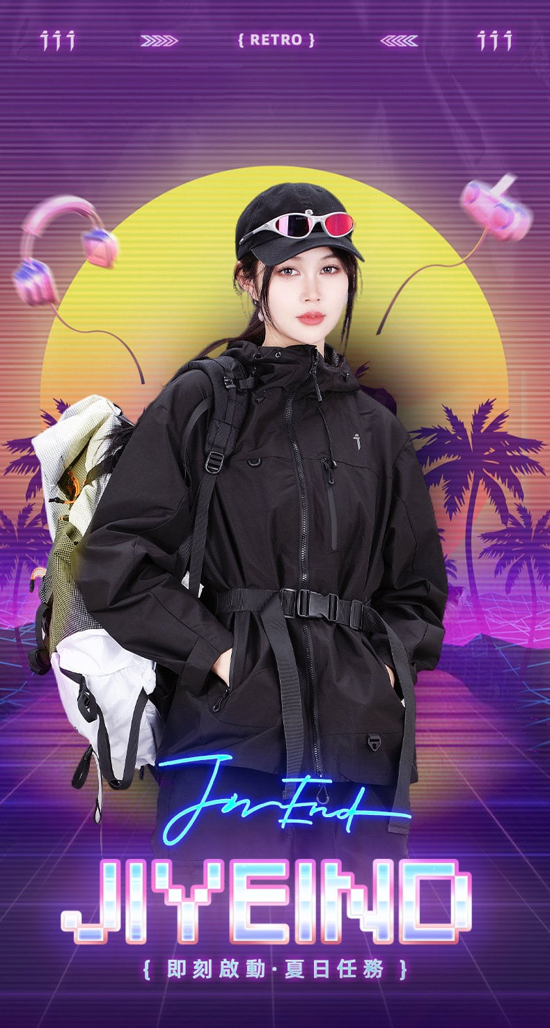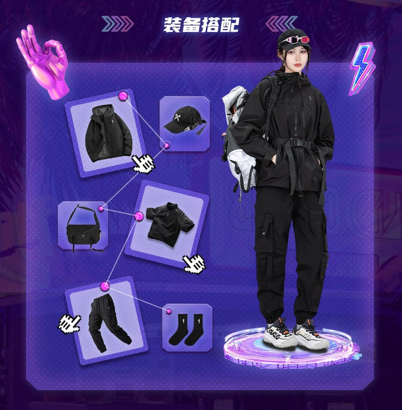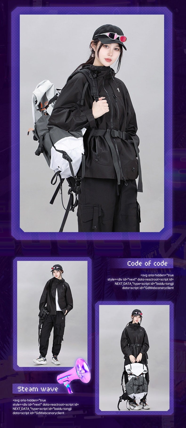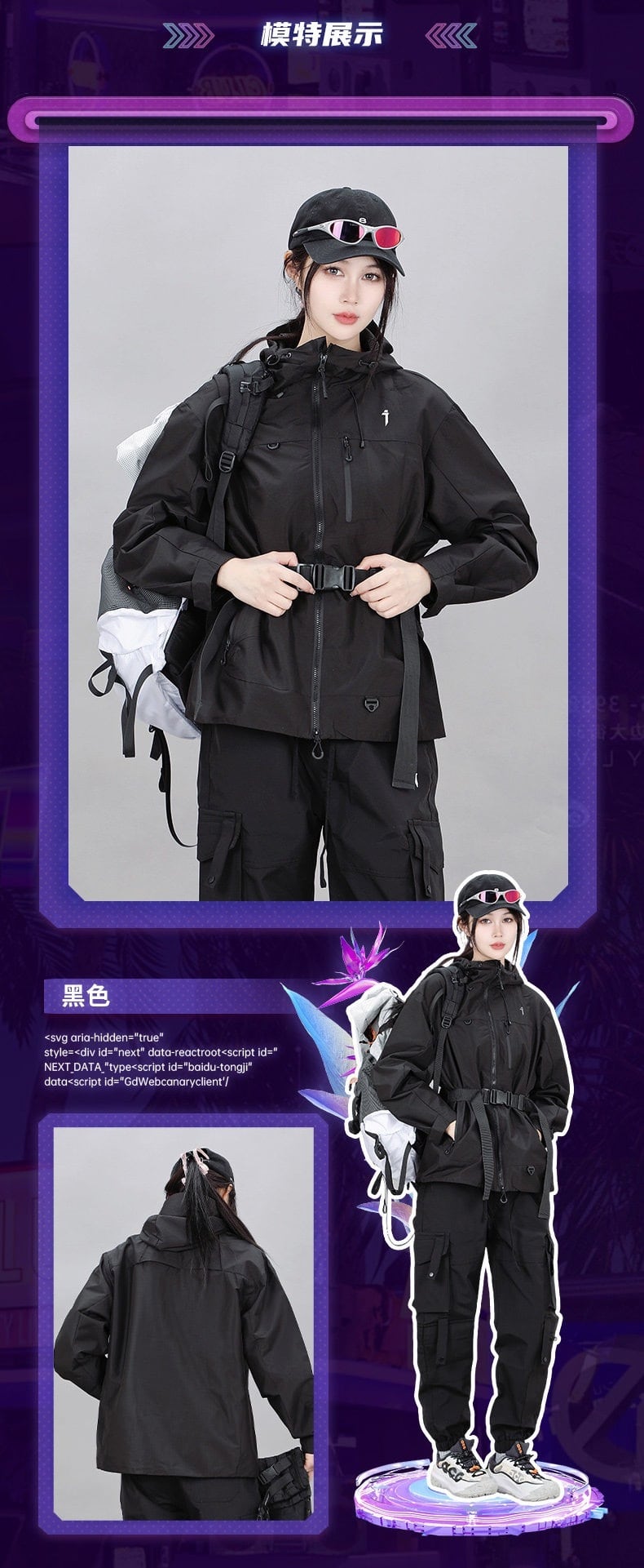 未来的な美学と生活実用性を兼ね備えた新しい機能服の形を表現しています