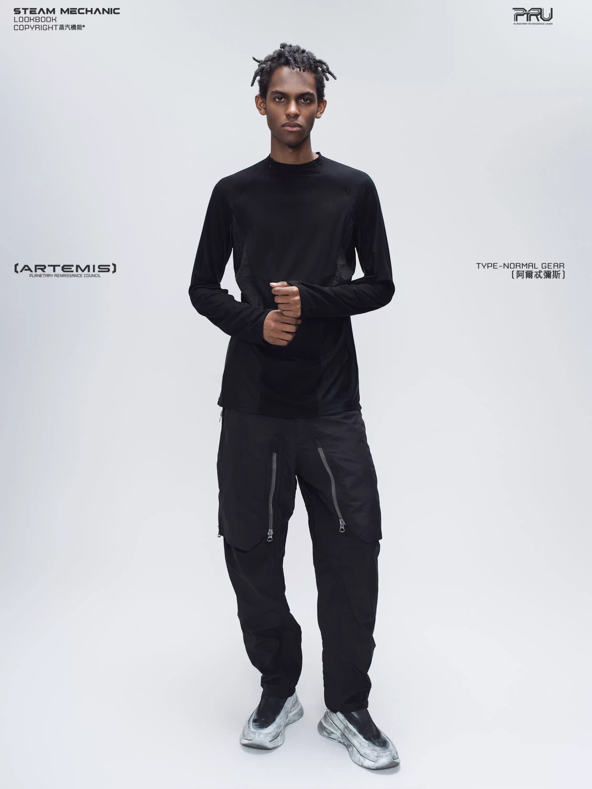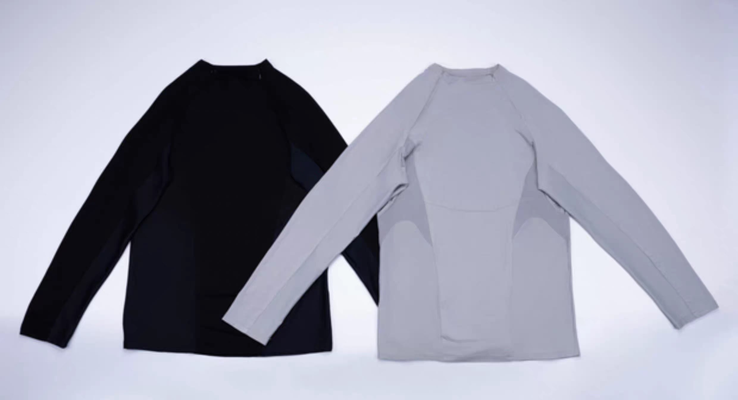 宇宙服のインナーとして開発された背景を持つ機能的デザイン