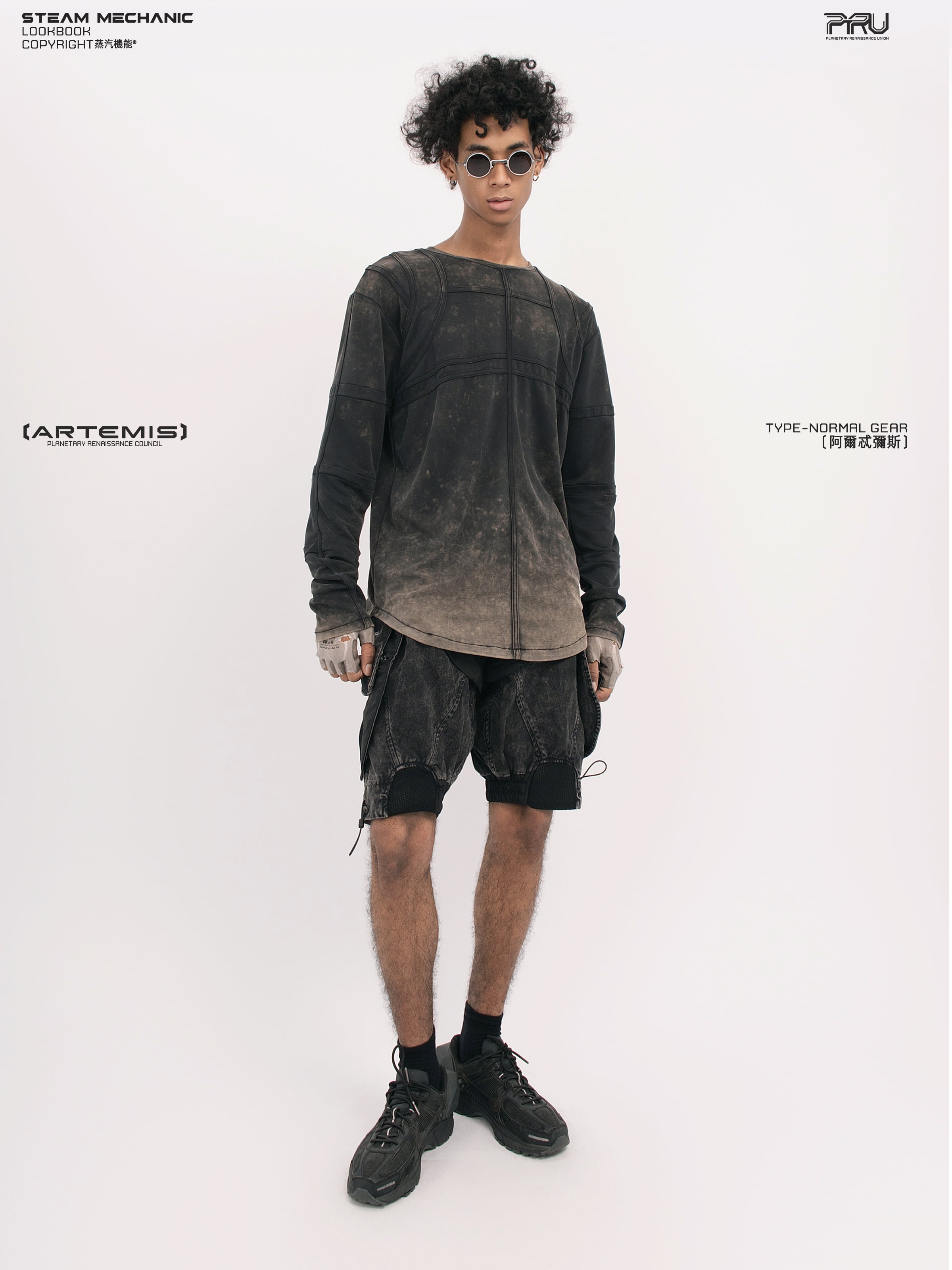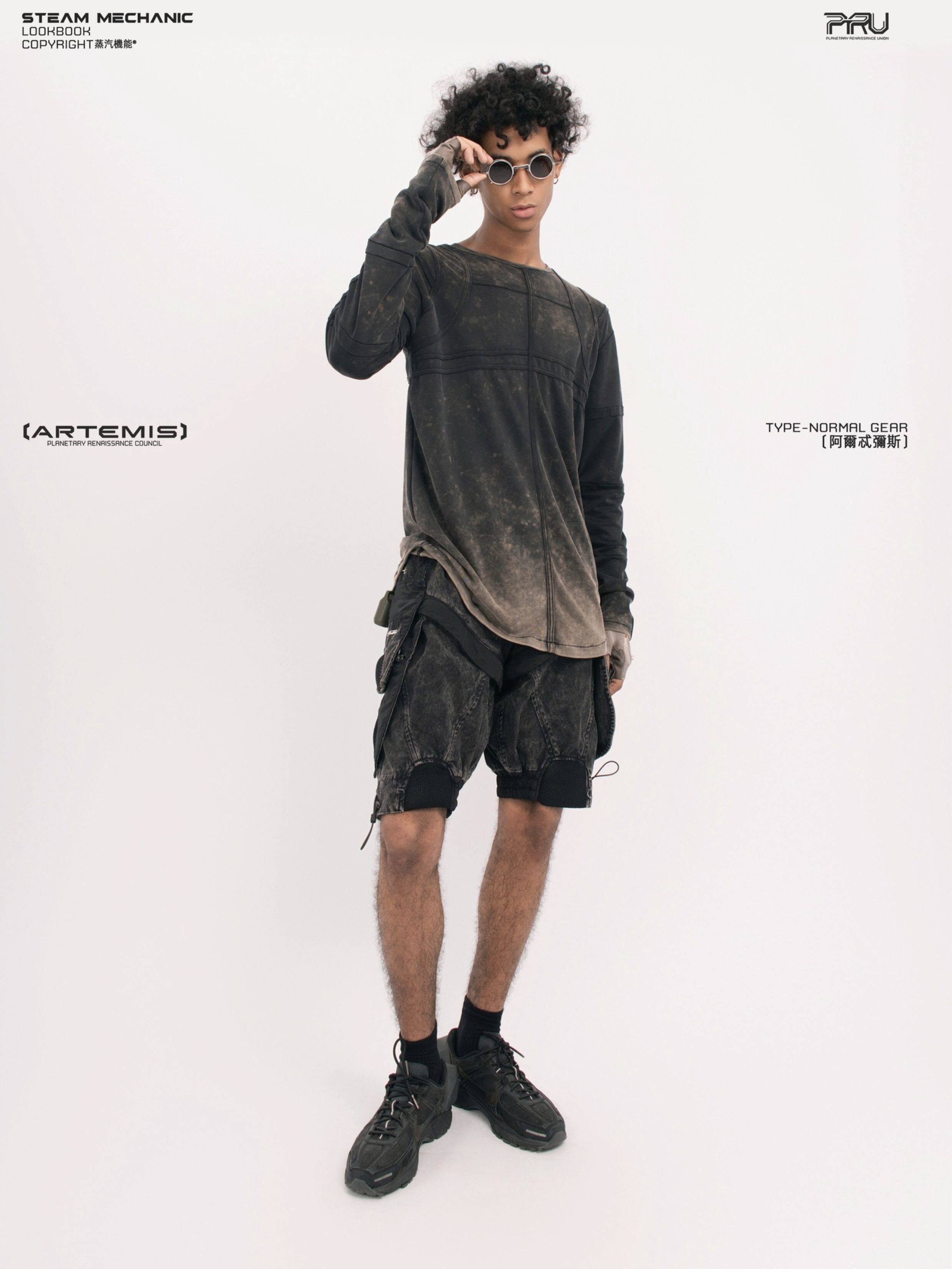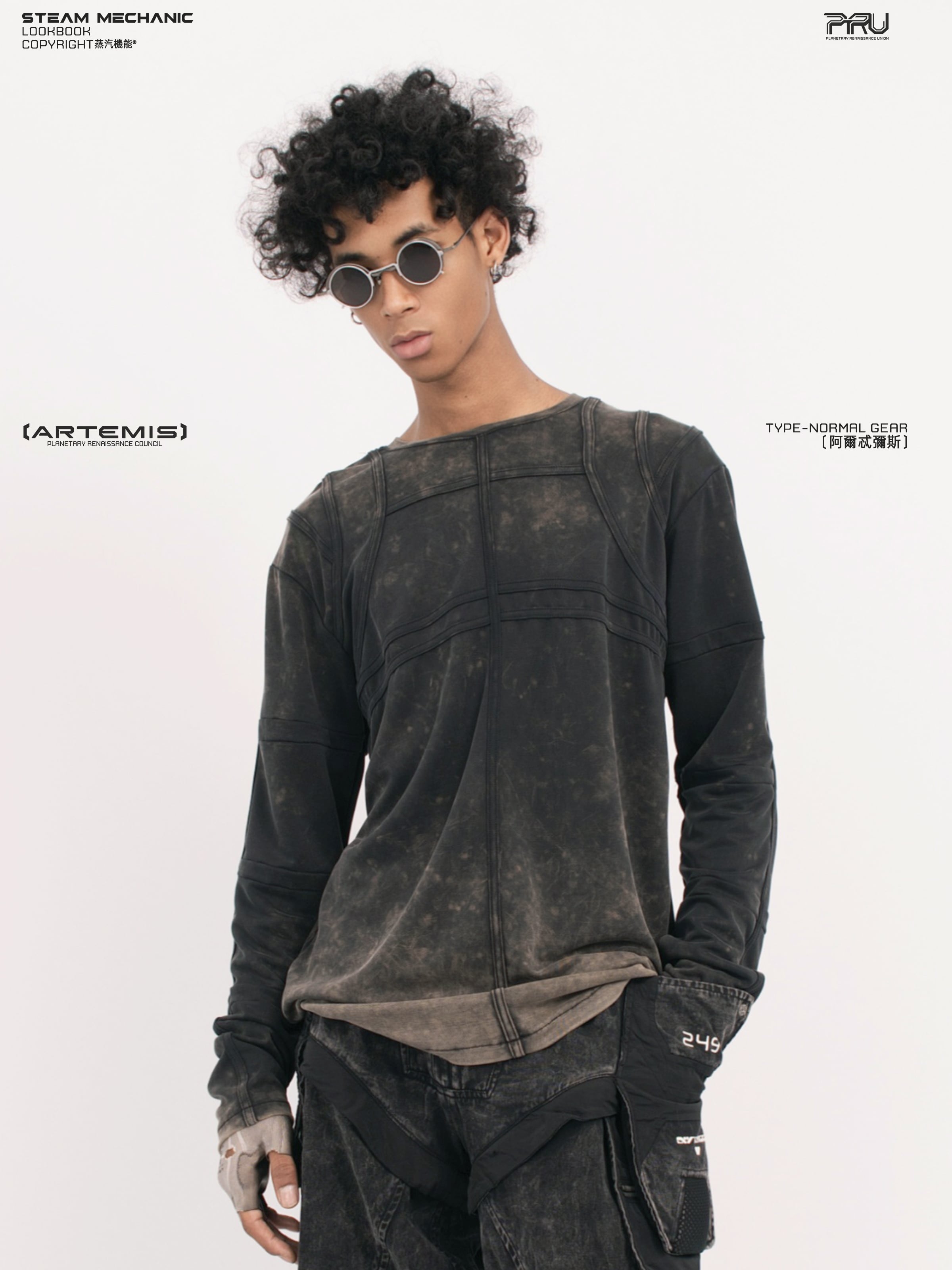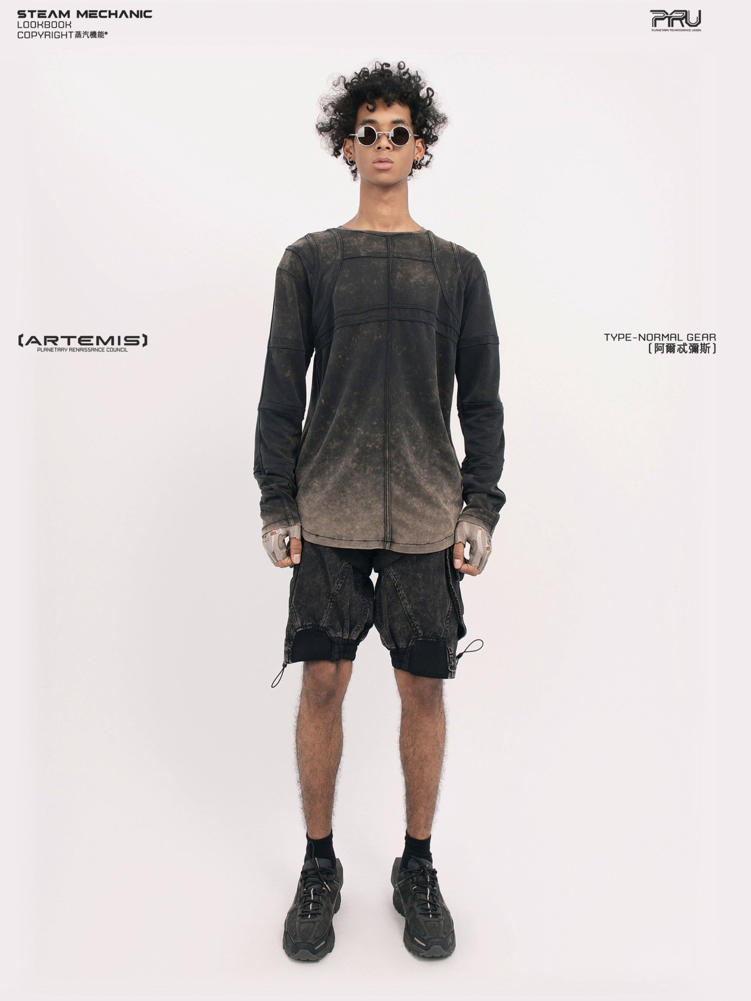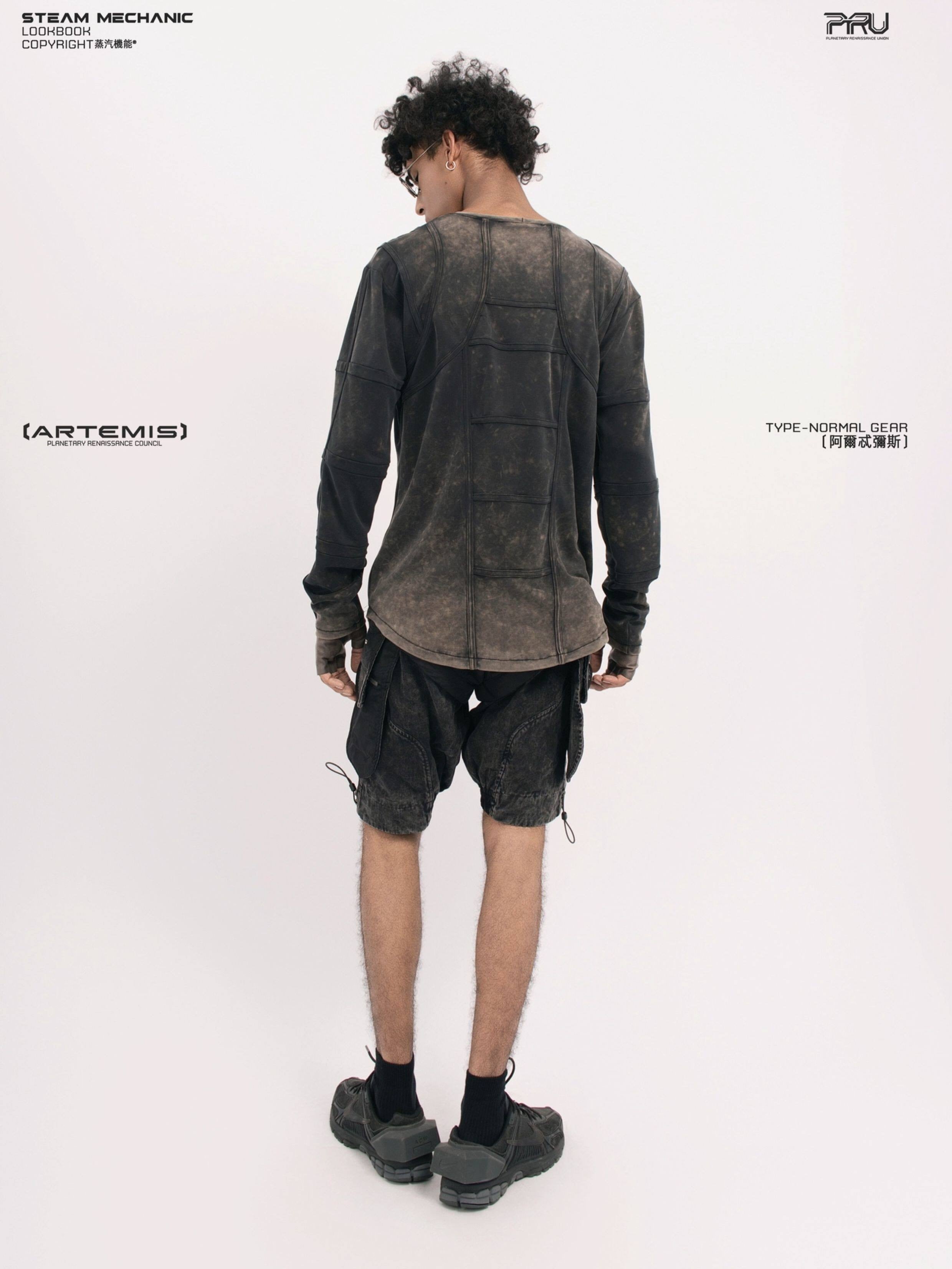 天体の軌道や重力場から着想を得た独創的なデザインのテックシャツです
