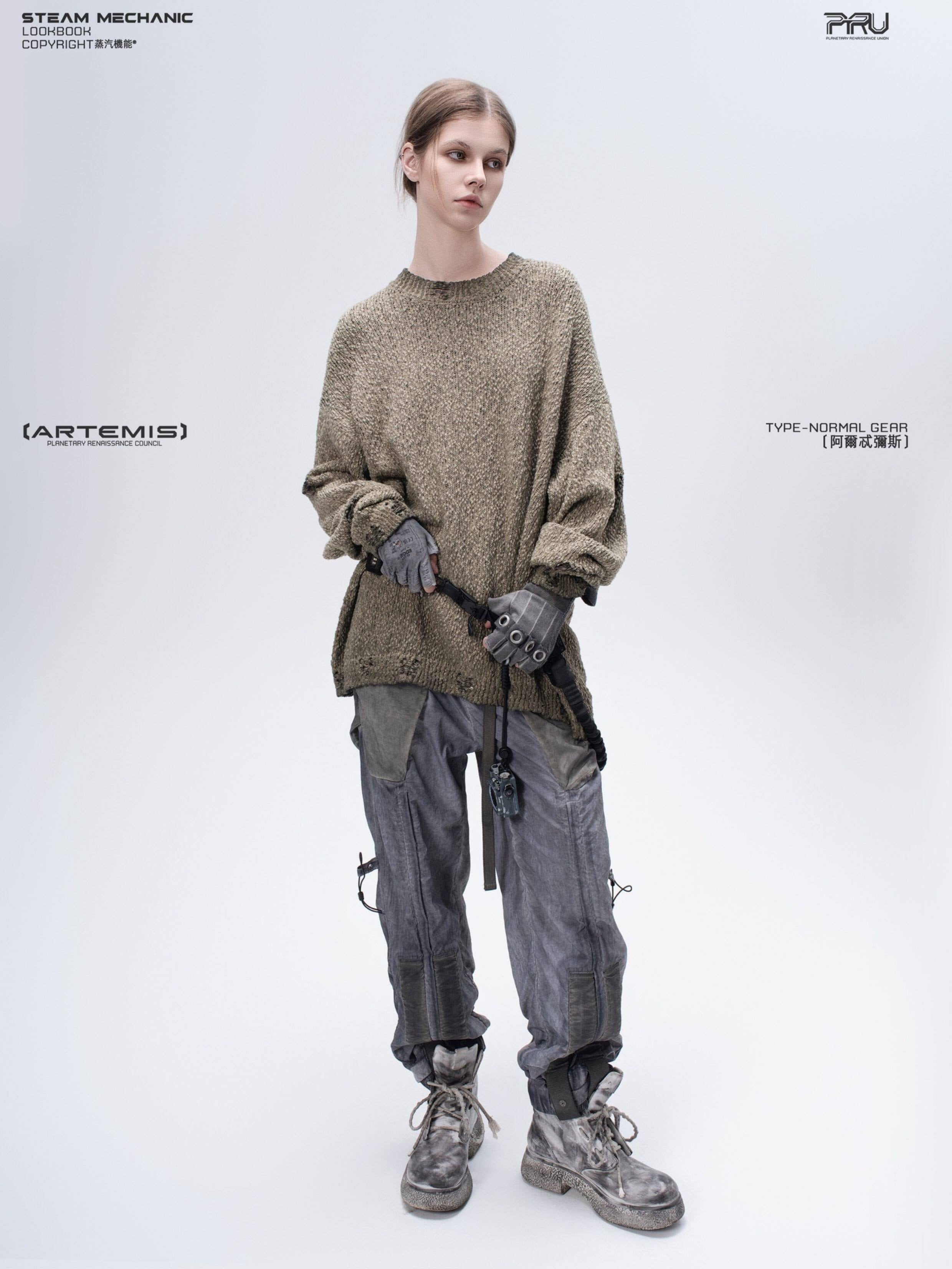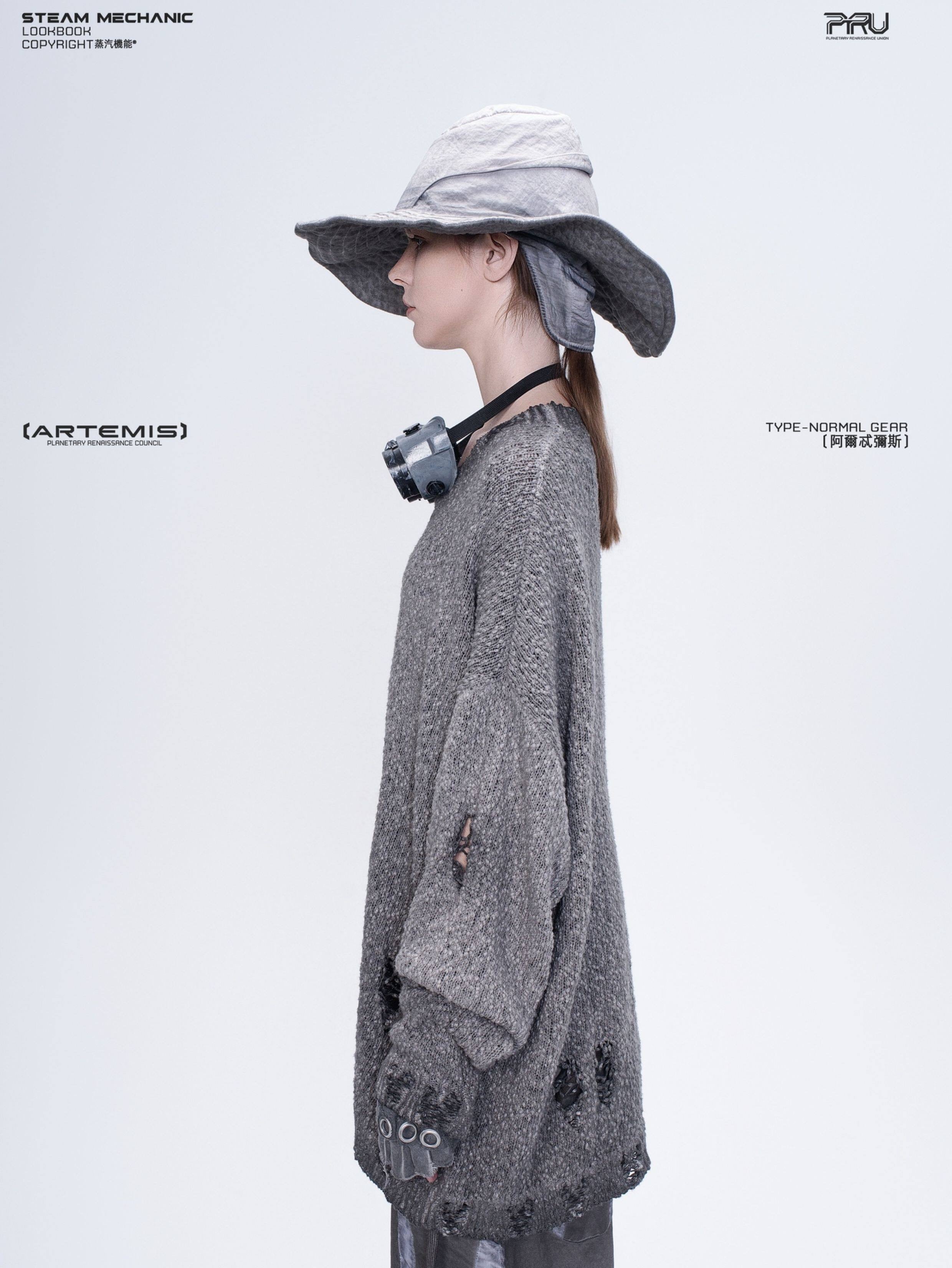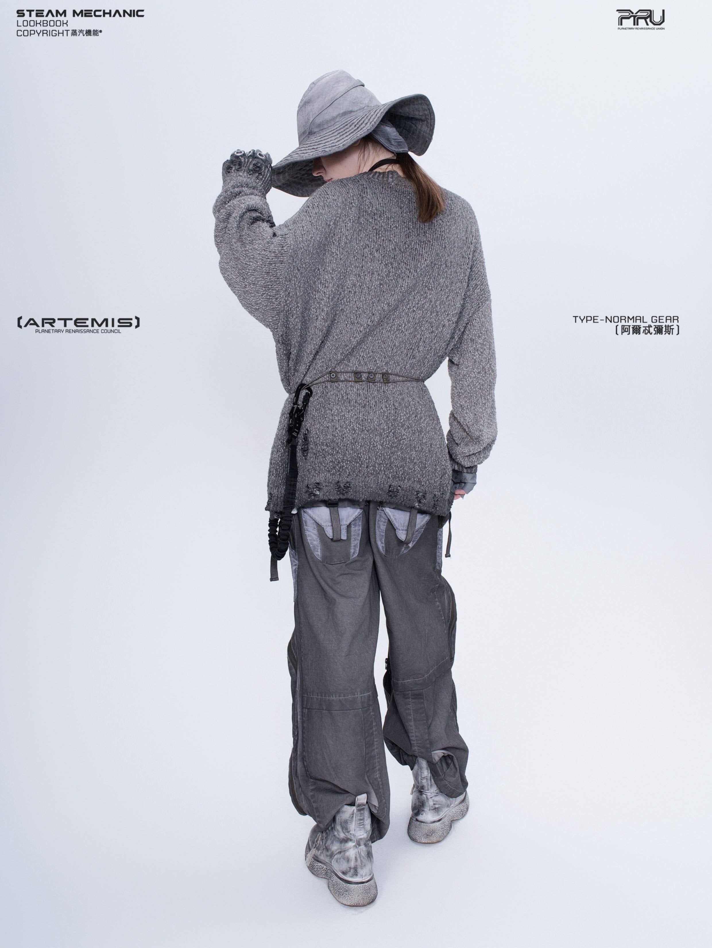 人類とAIの歴史的対立を背景としたストーリー性を持つコンセプチュアルな一着