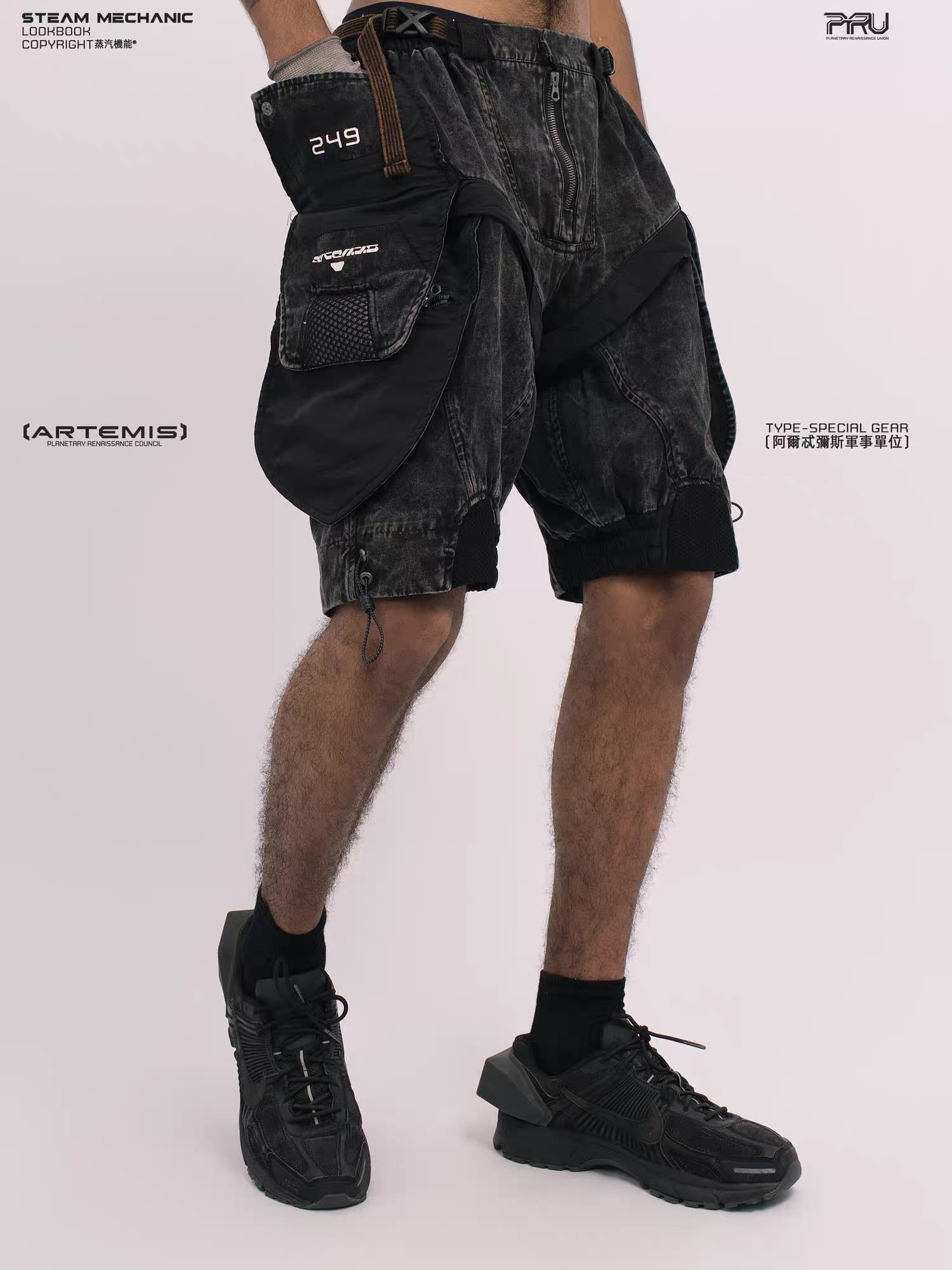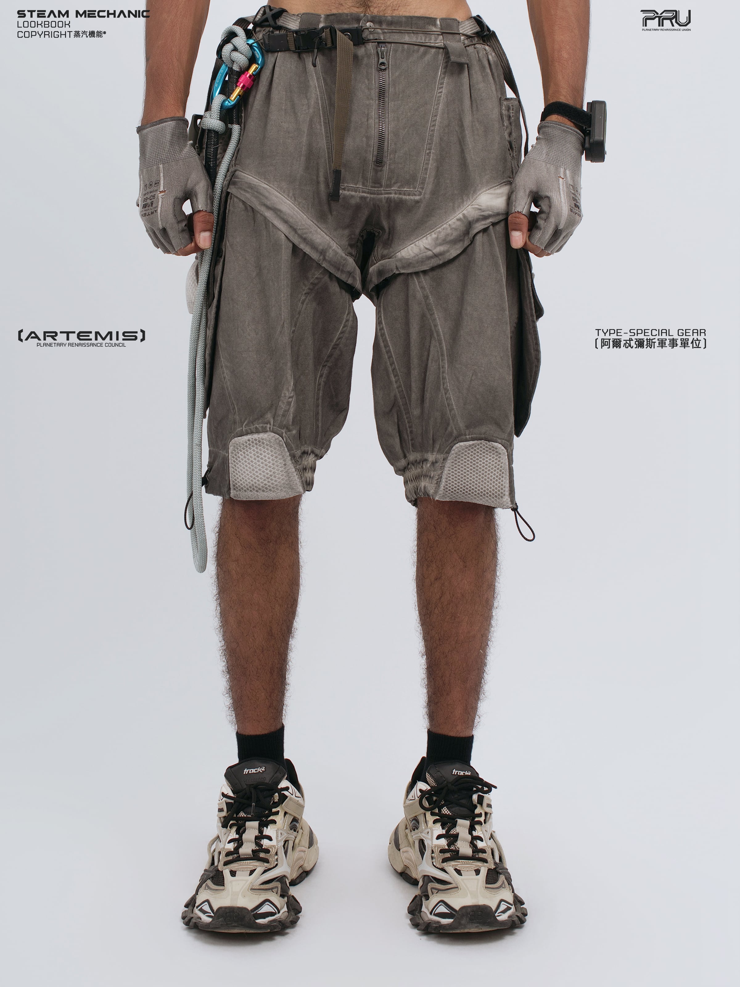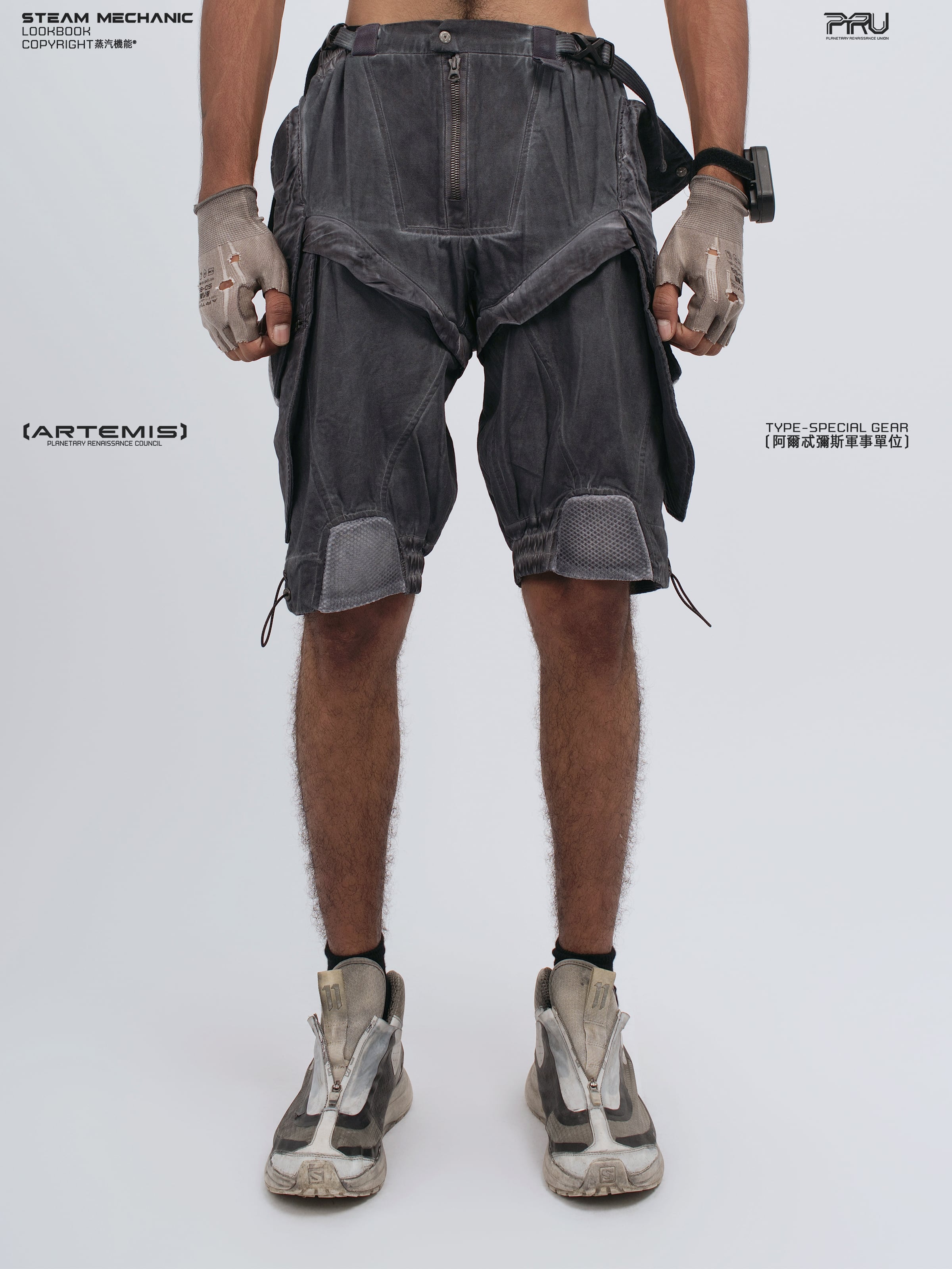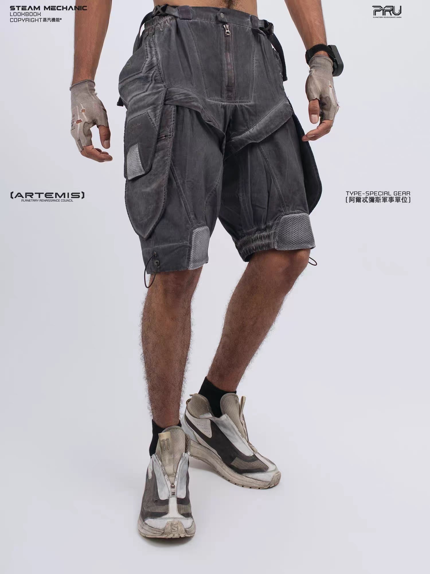 幾何学的なパネル切り替えとEVAパッドを膝部分に配置したメカニカルなデザインが特徴