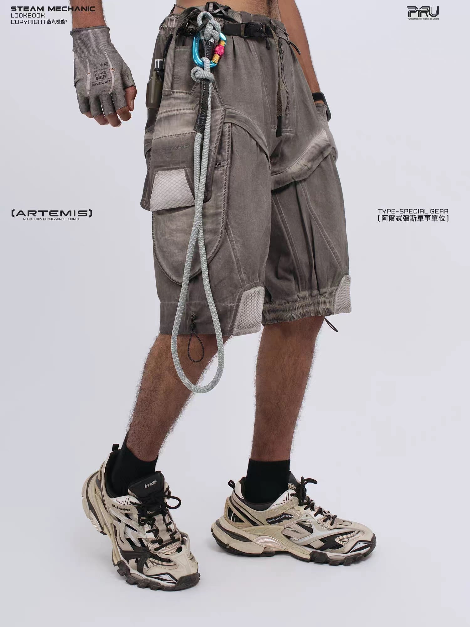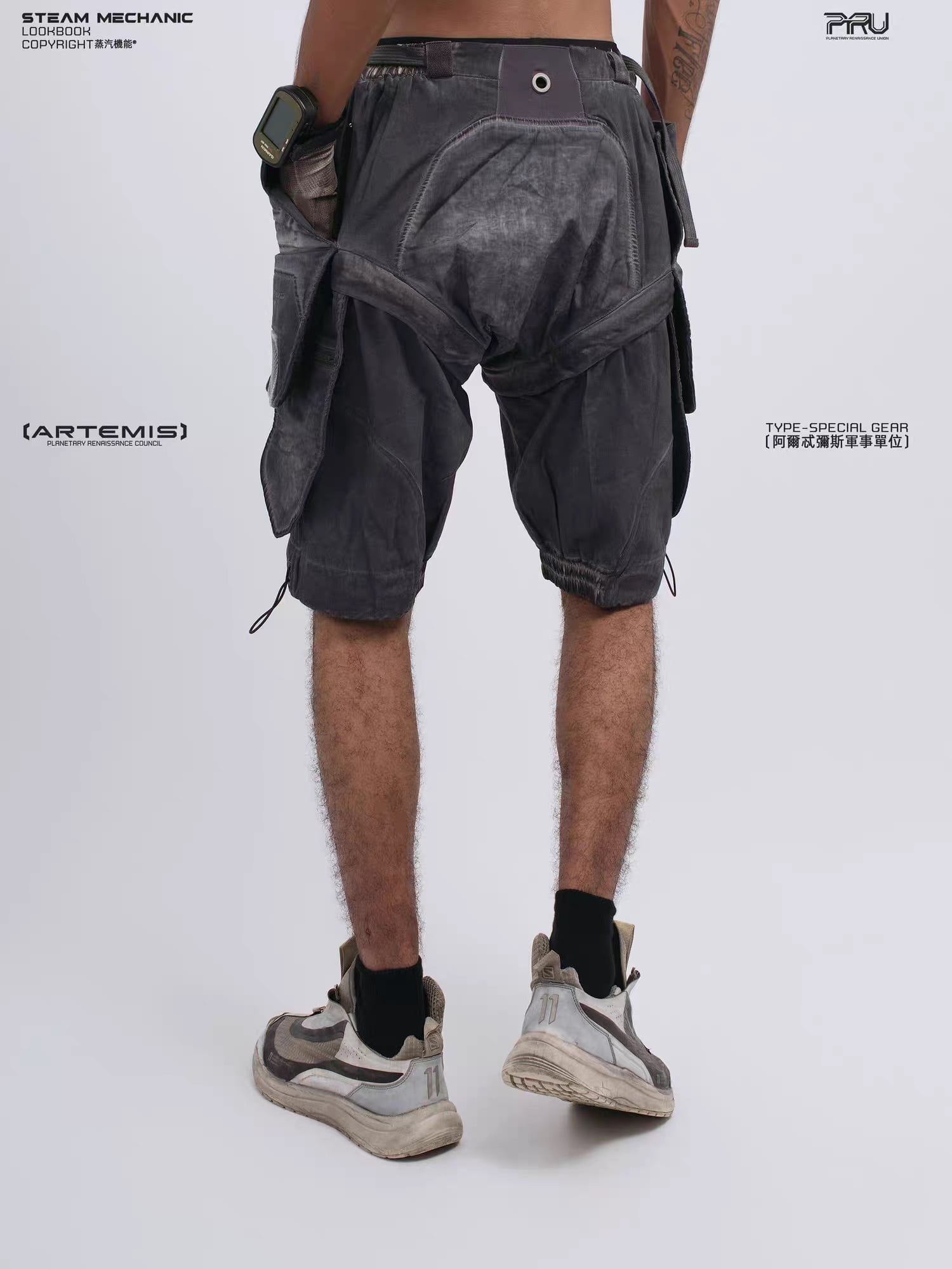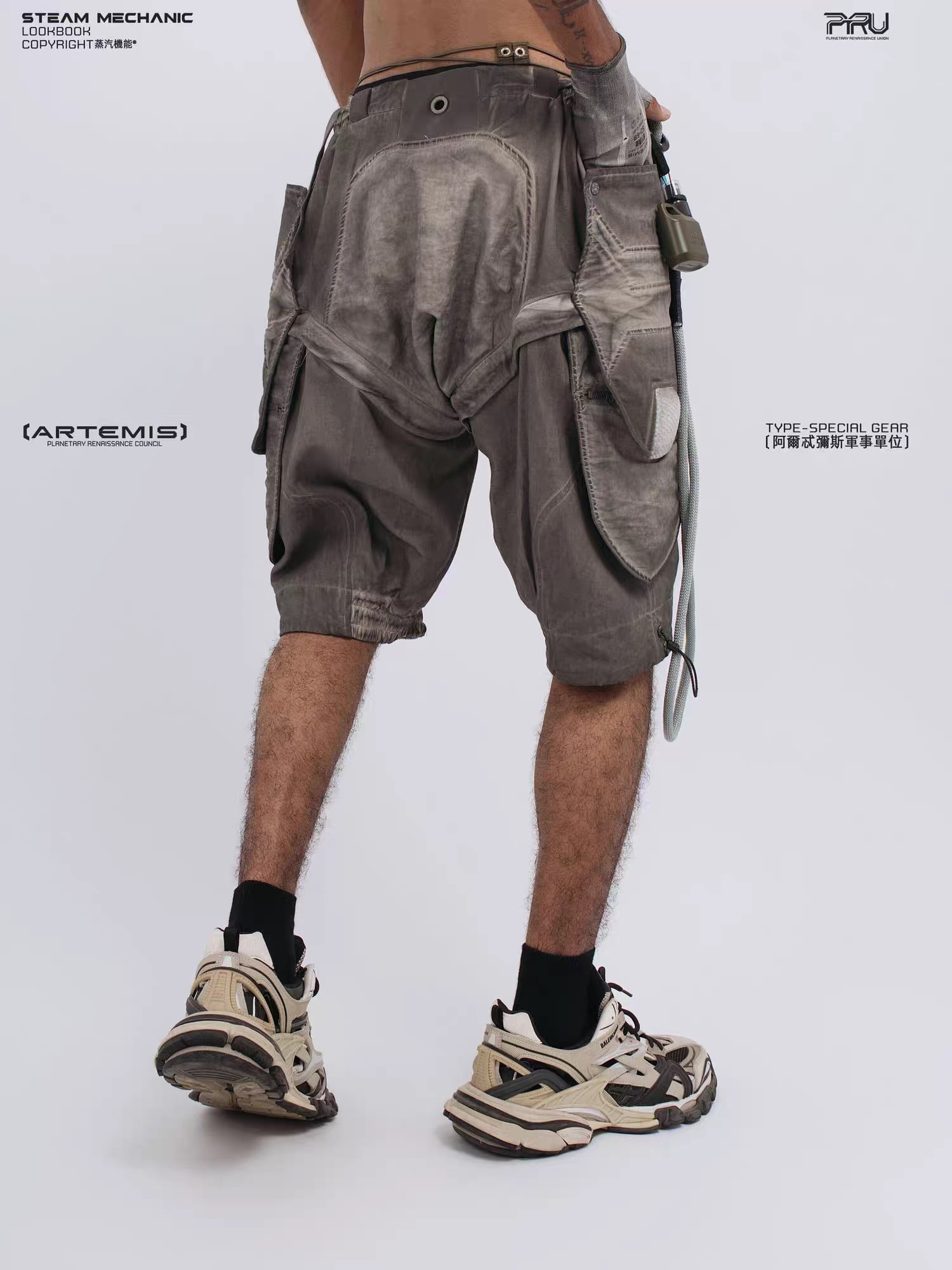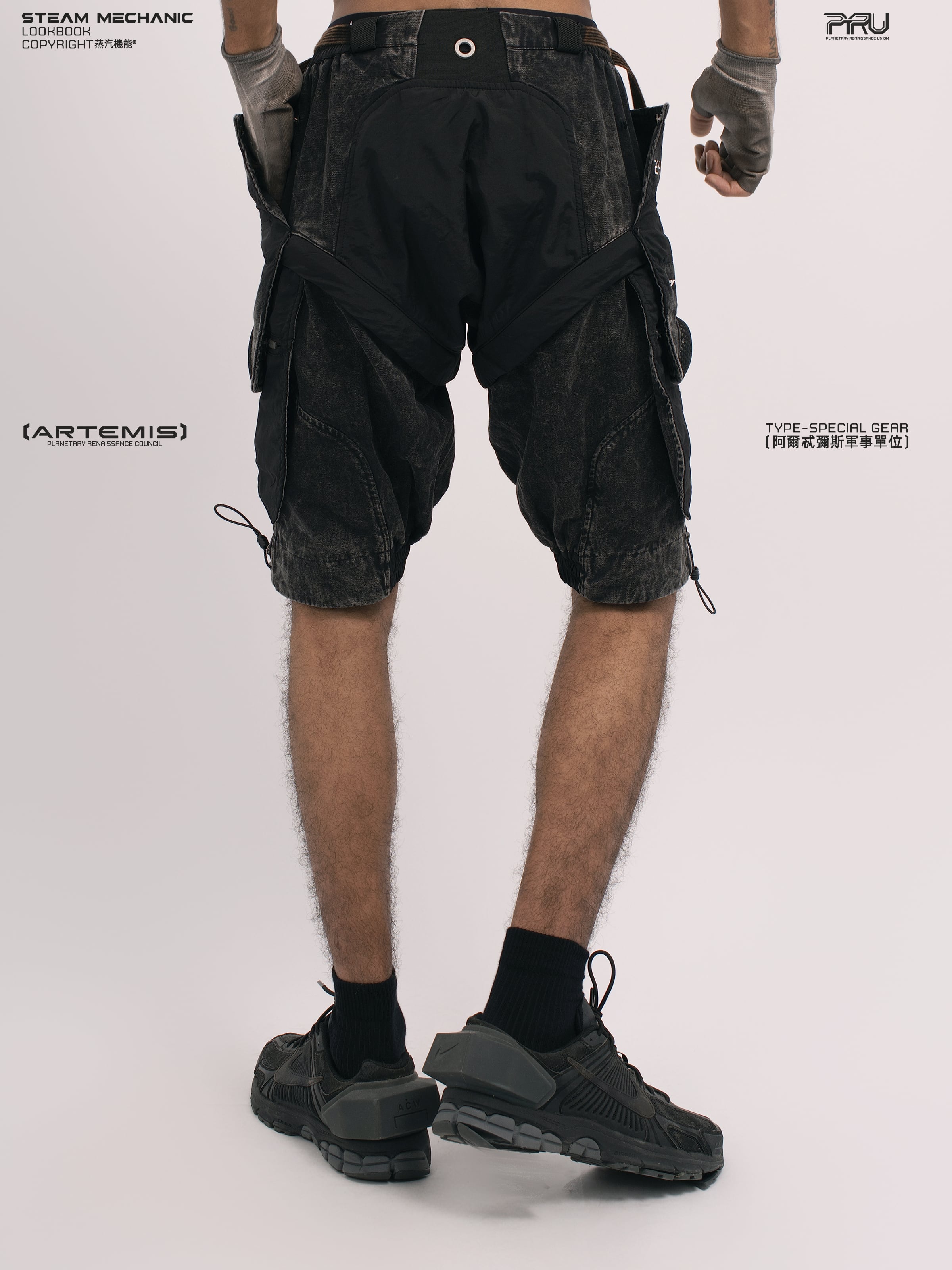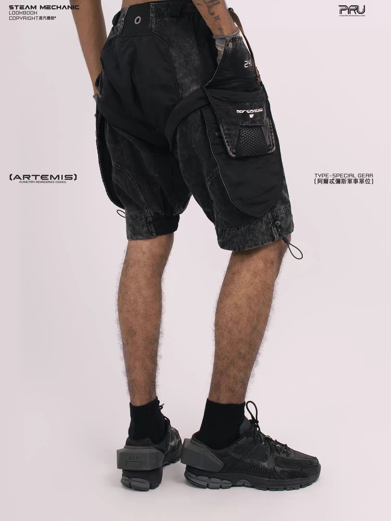 幾何学的なパネル切り替えとEVAパッドを膝部分に配置したメカニカルなデザインが特徴