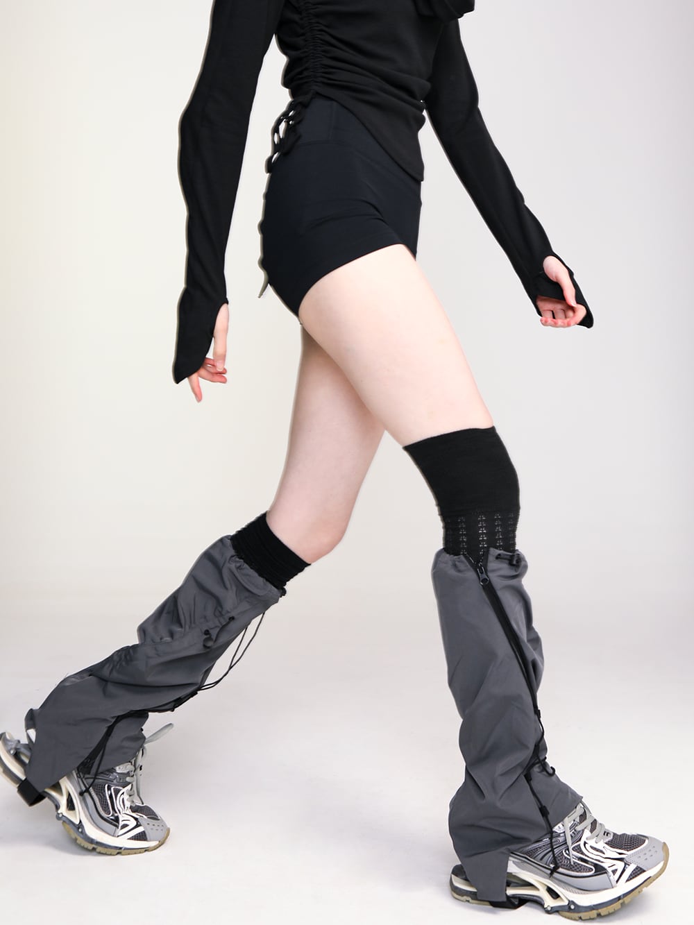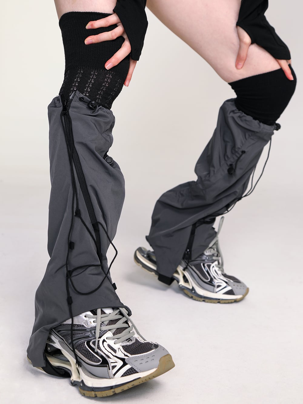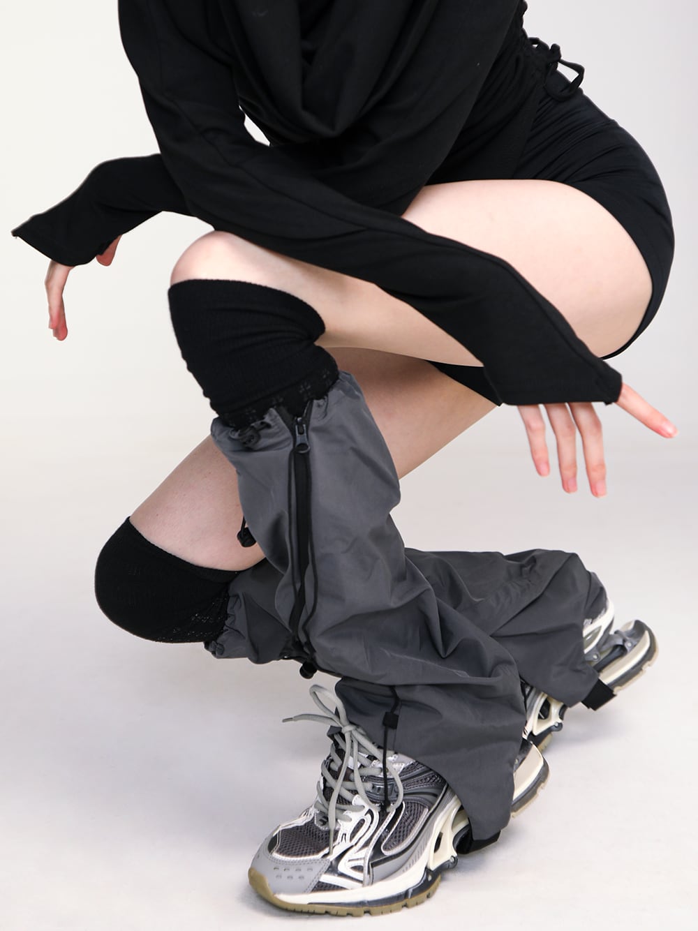 クラシックな解体再構築デザインを採用したドローストリングとジッパーが目を引くテックウェアスタイルのレッグカバーです