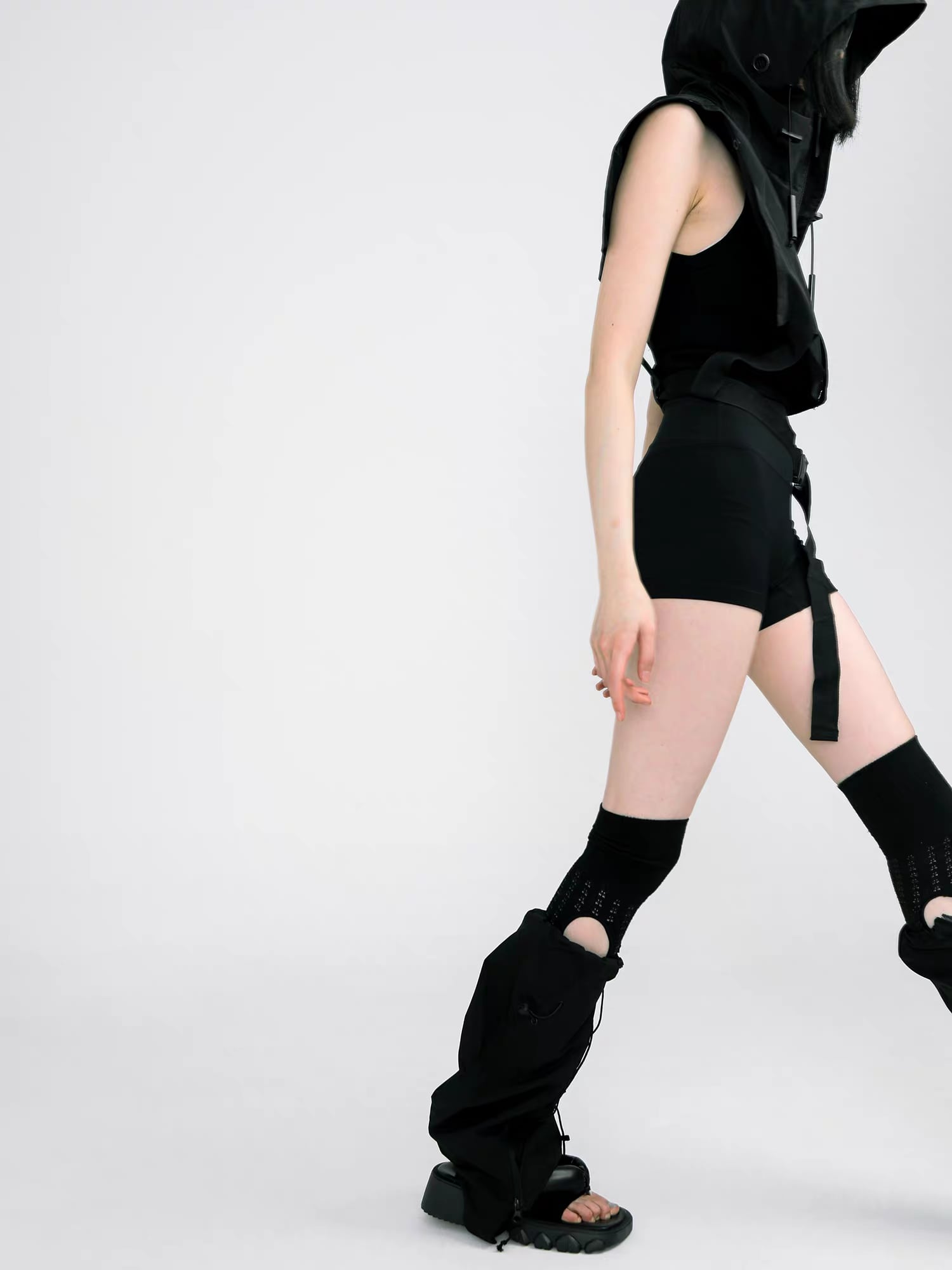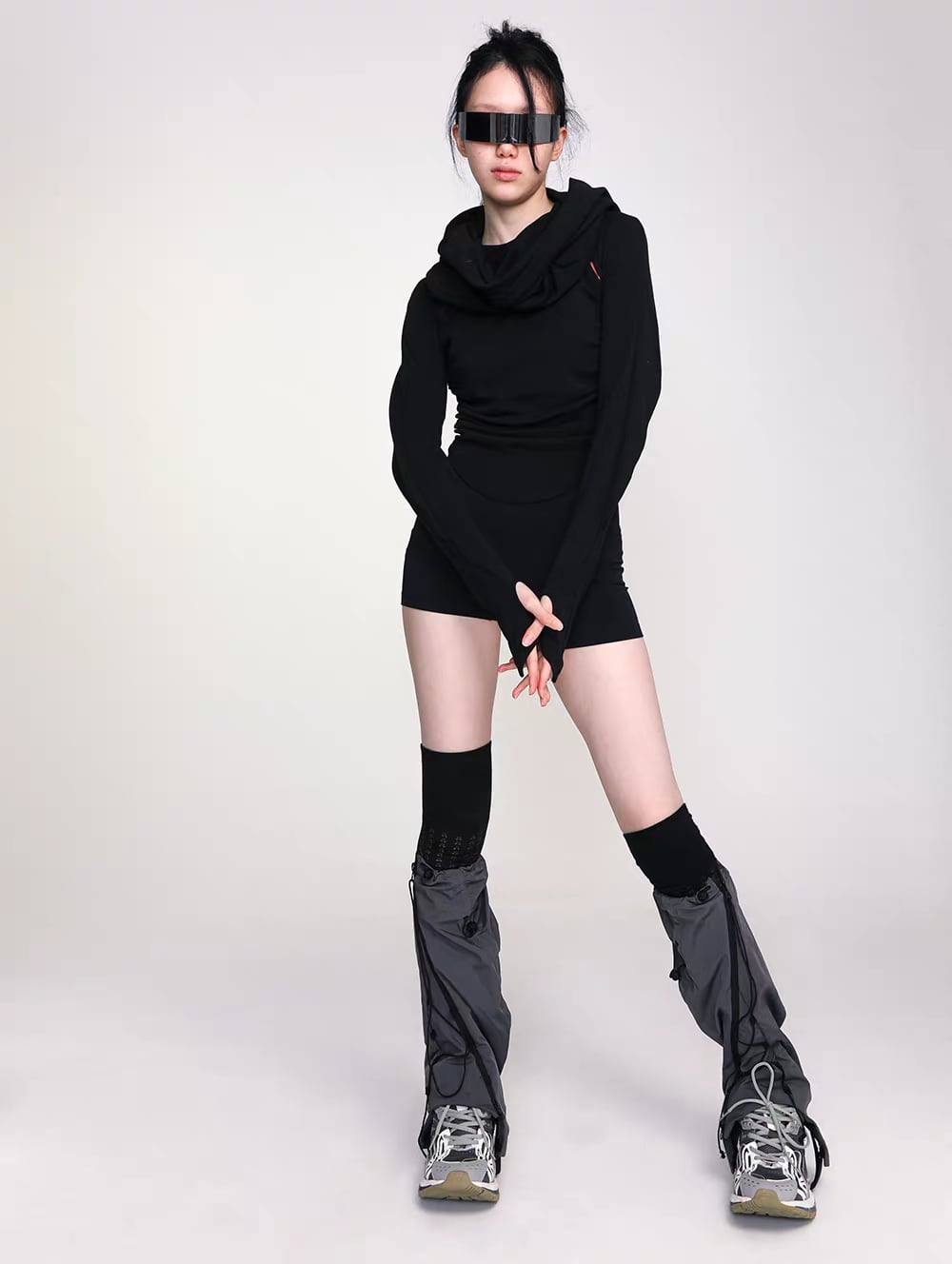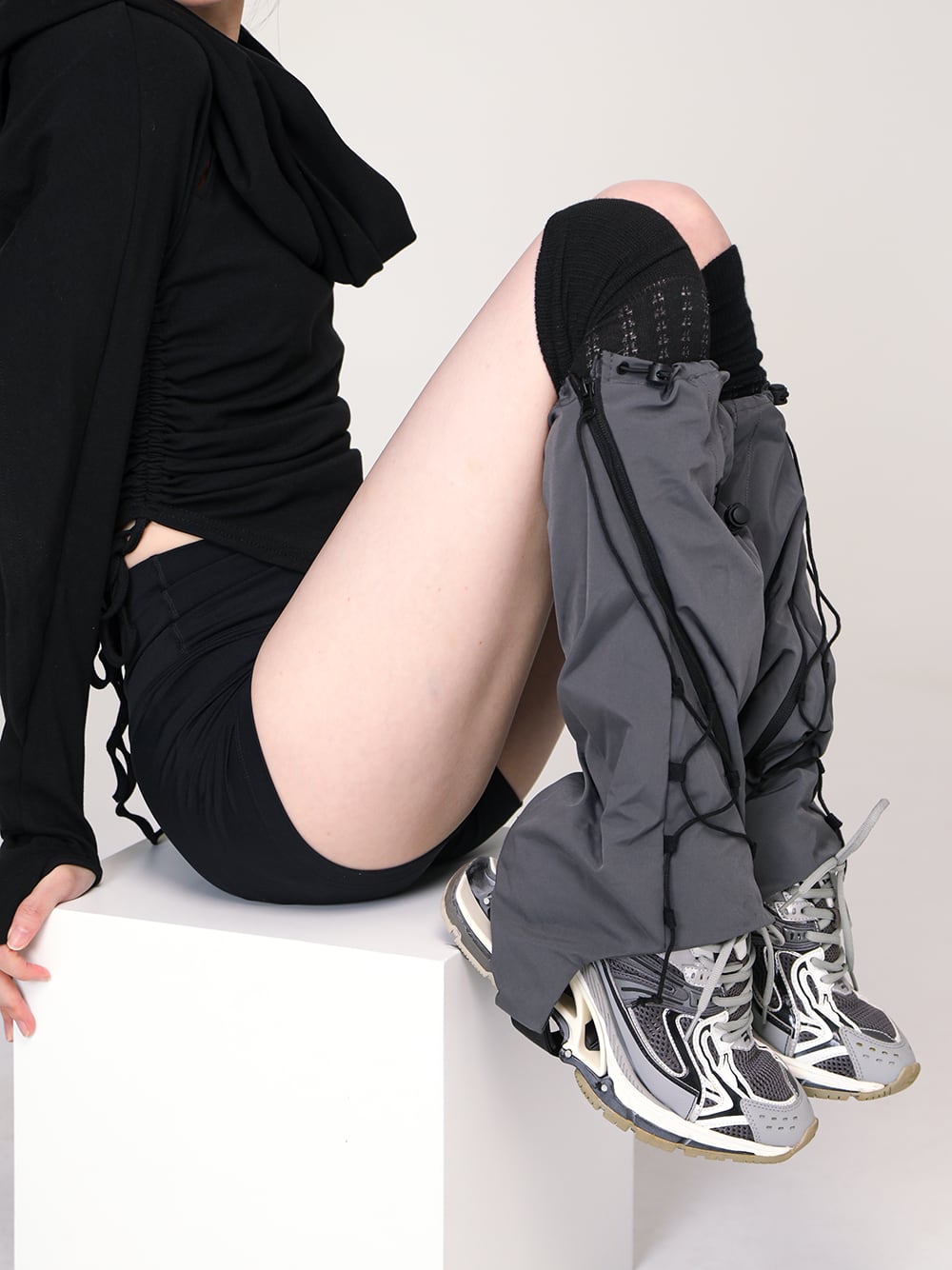 クラシックな解体再構築デザインを採用したドローストリングとジッパーが目を引くテックウェアスタイルのレッグカバーです