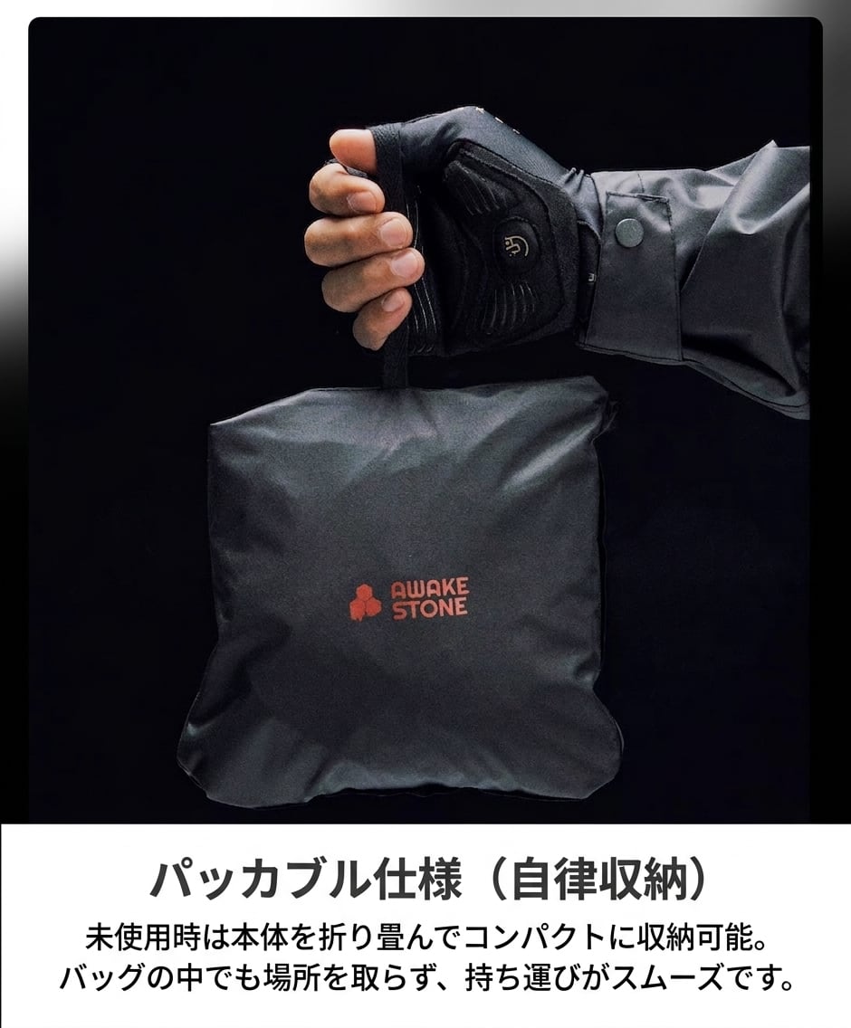パッカブル仕様で本体をコンパクトに収納して持ち運びができるため急な天候変化にもスマートに対応