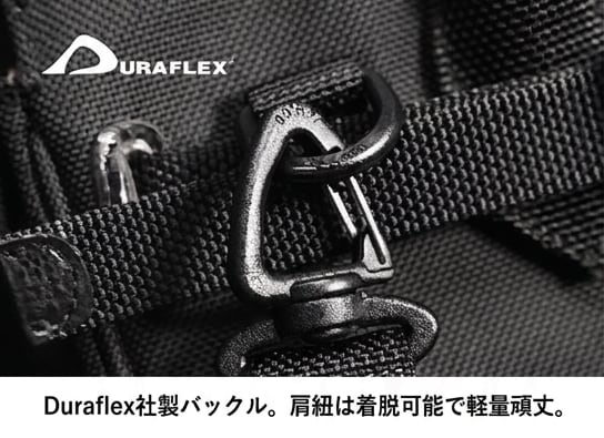 英国COATS社の高強度縫製糸やアメリカDURAFLEX社のパーツを採用し、細部に至るまでプロフェッショナルグレードの品質を追求しました