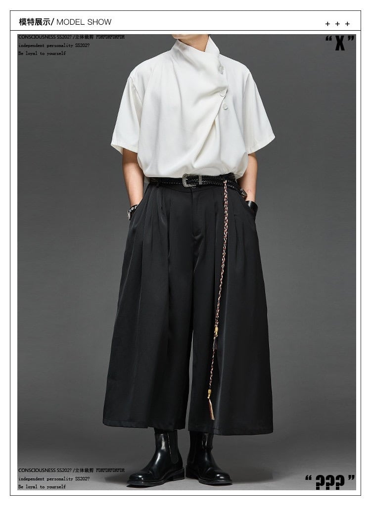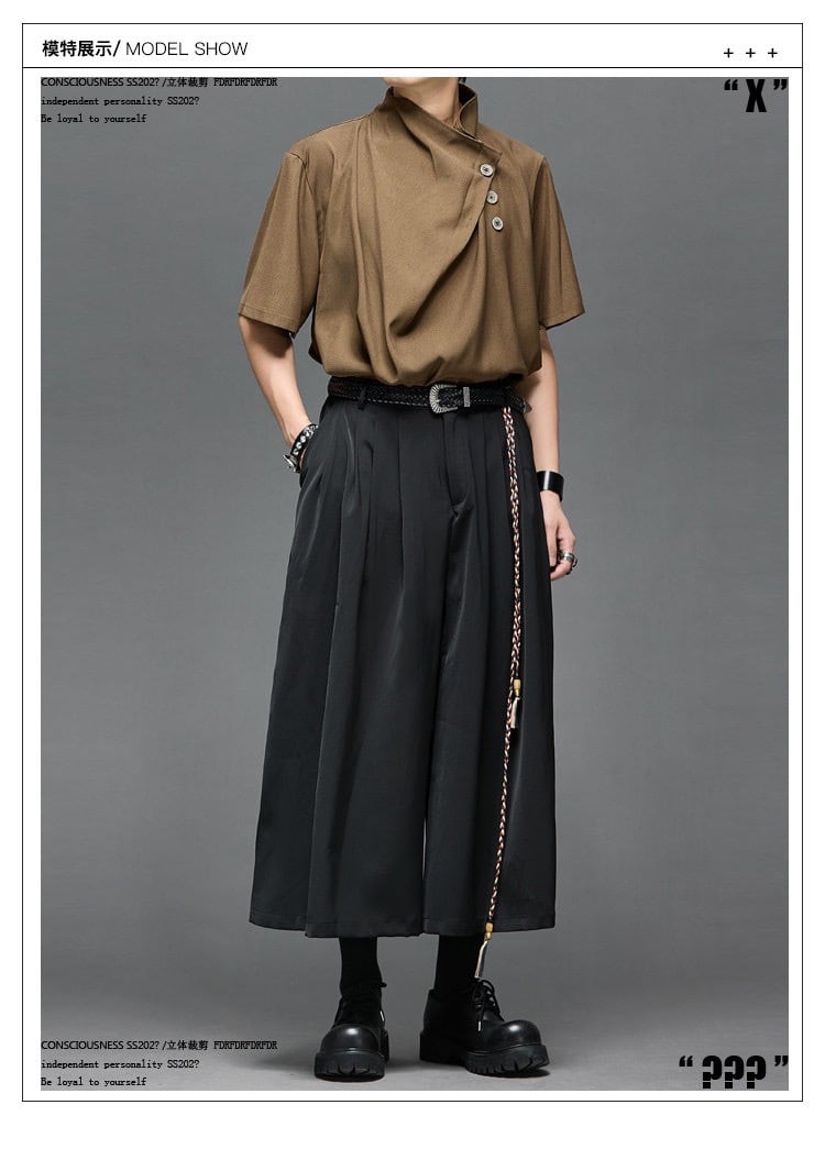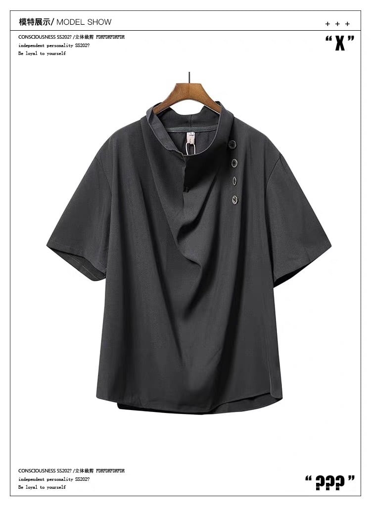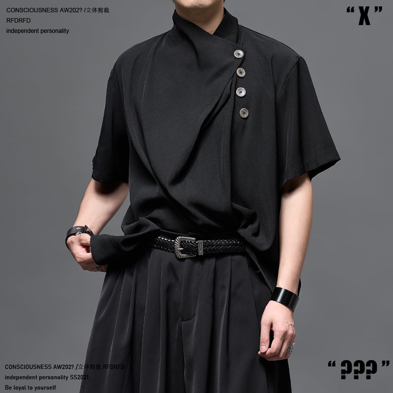 RFDRFD アシンメトリードレープネック ルーズフィット 五分袖シャツ