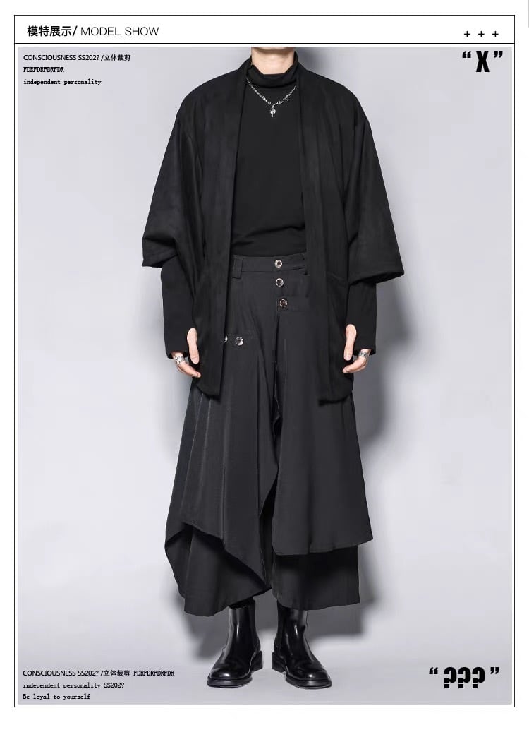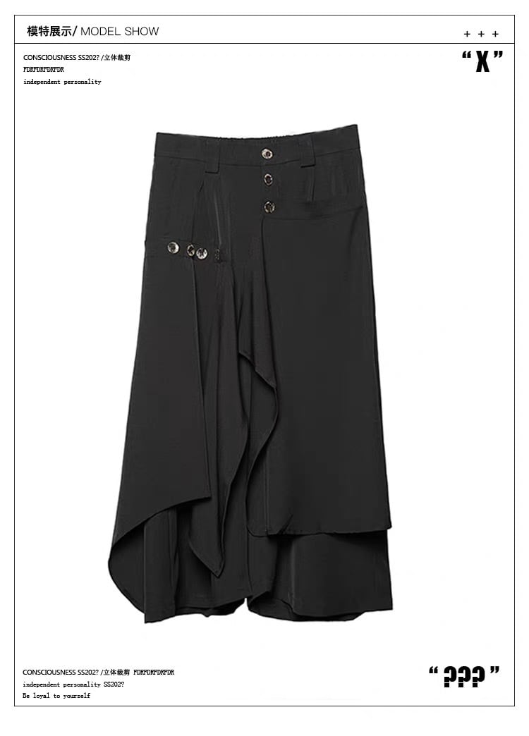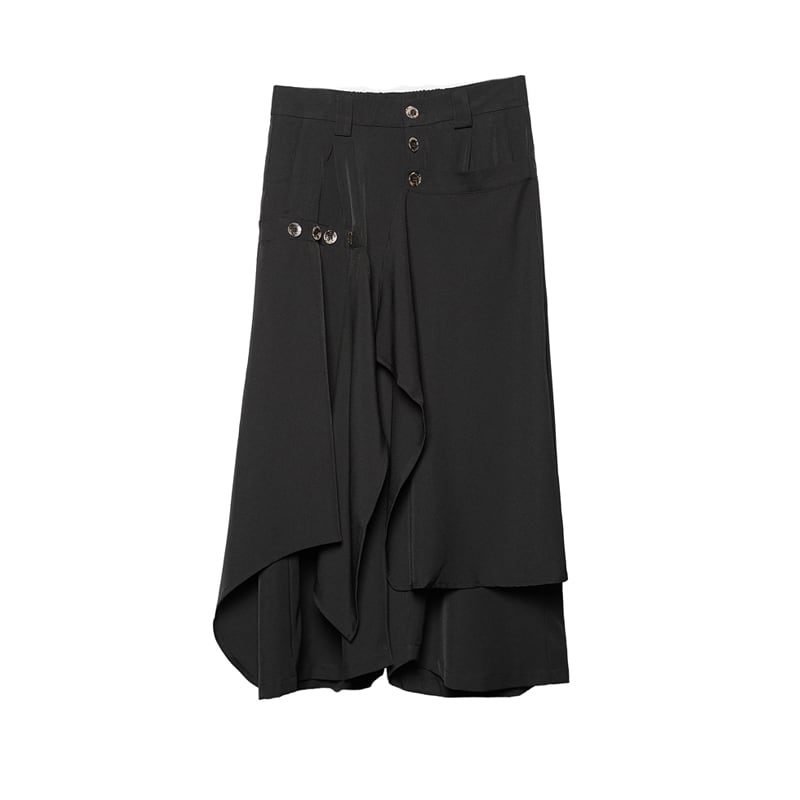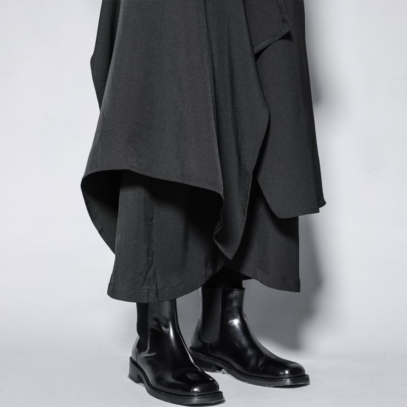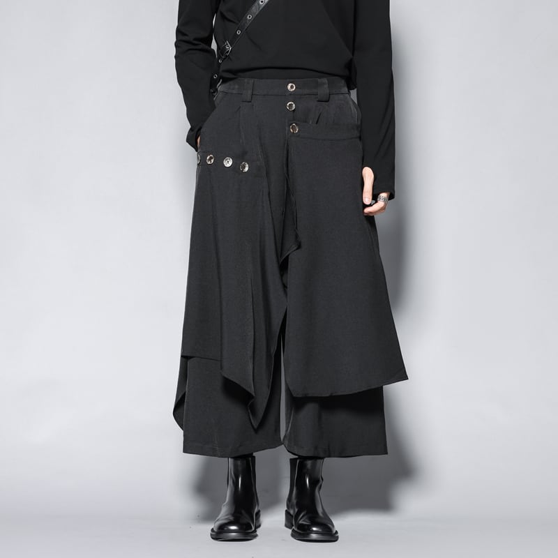 日本のミニマリズムと現代的なモードを融合させたフェイクレイヤードデザインのワイドパンツです