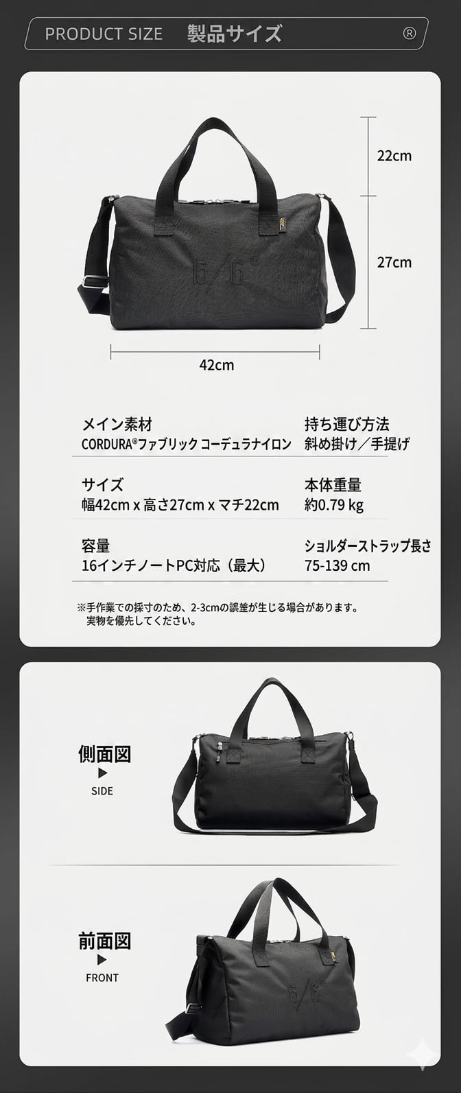 防弾チョッキの素材として開発された1680Dナイロンを採用した高機能ボストンバッグ