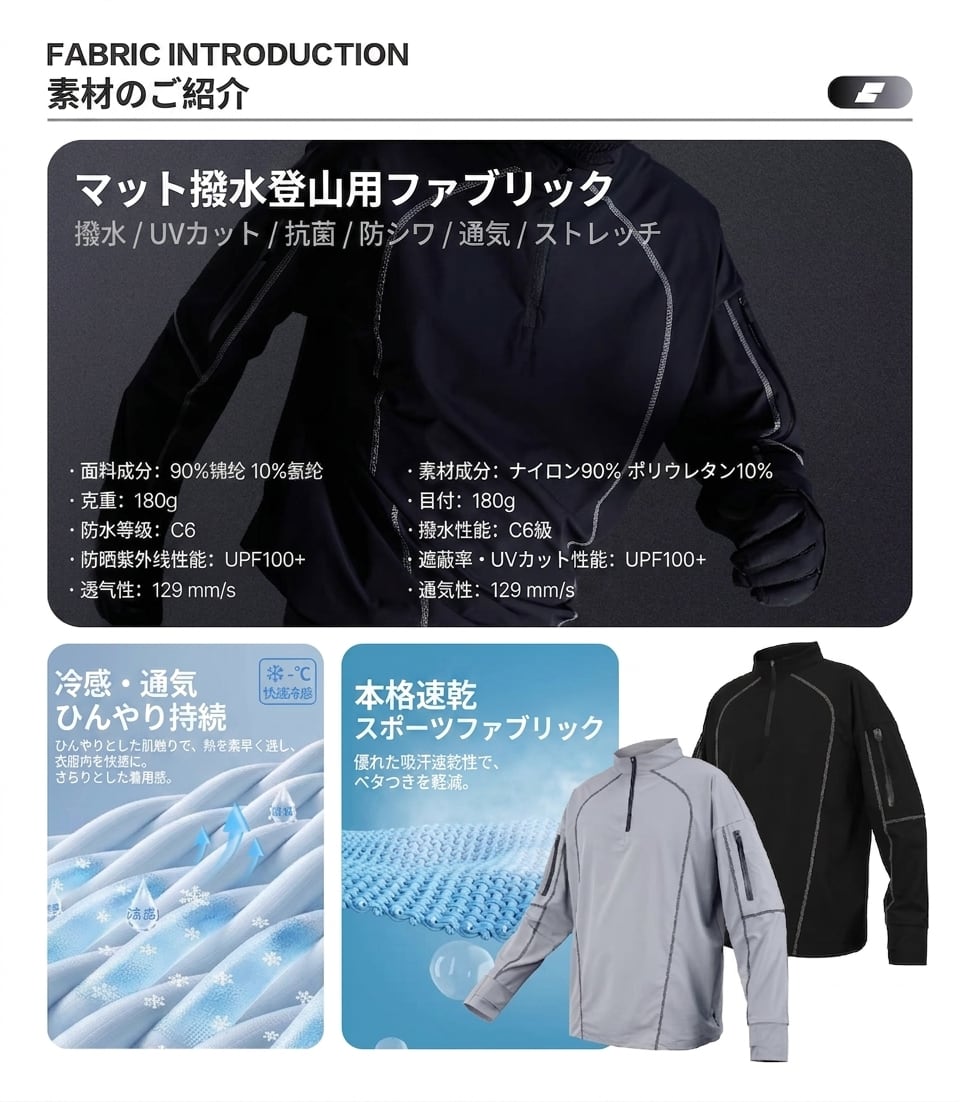 優れた防水性と防紫外線性能を兼ね備えた高機能な登山用ファブリックを採用しています