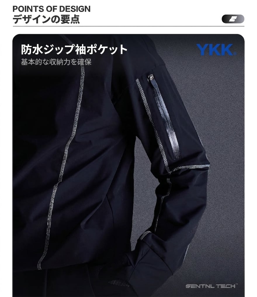 袖口には手袋のように機能するサムホールを配し防風性と防寒性を高めた形態への切り替えが可能です