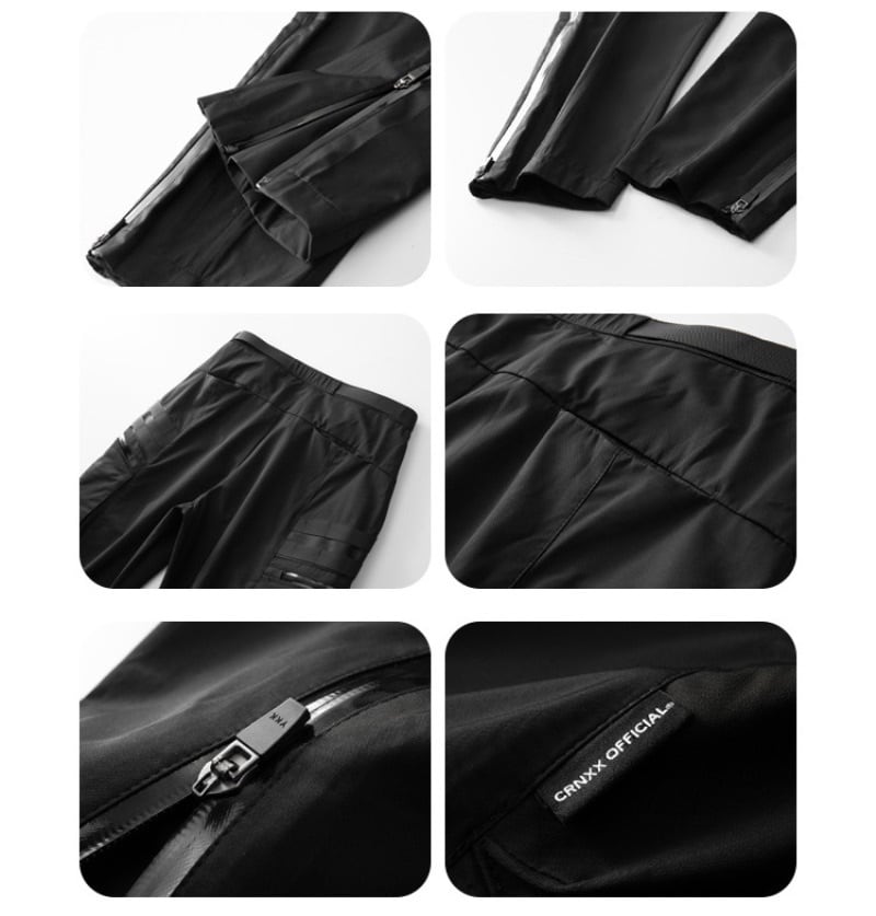 裾から膝あたりまでのロングジップによりシルエットの変更が可能