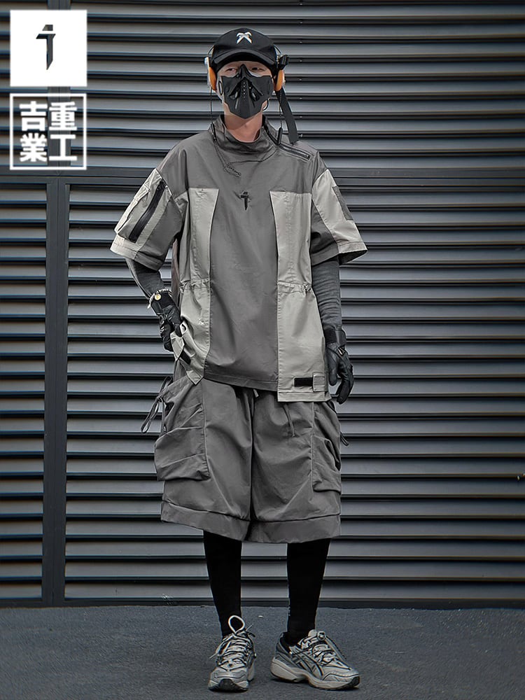 JIYEIND 24SS ハーフスリーブカラーブロックテックプルオーバー